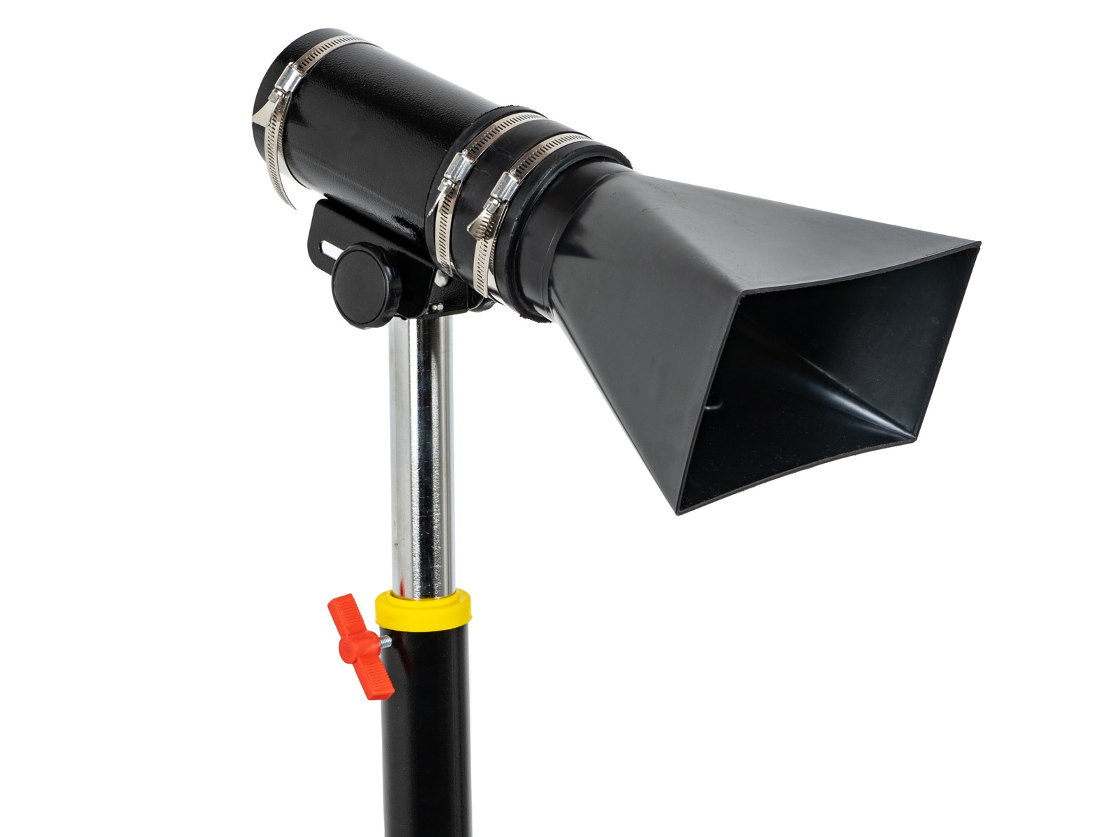 Der Absaugständer mit dem großdimensionierten Trichter lässt sich in der Höhe einstellen und schwenken.