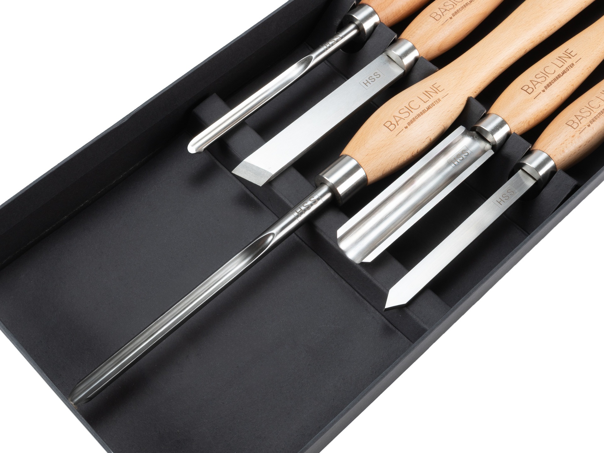 Drechselmesser-Set in HSS M2-KRYO Qualität für Anfänger und Fortgeschrittene, in kompakter Ausführung.