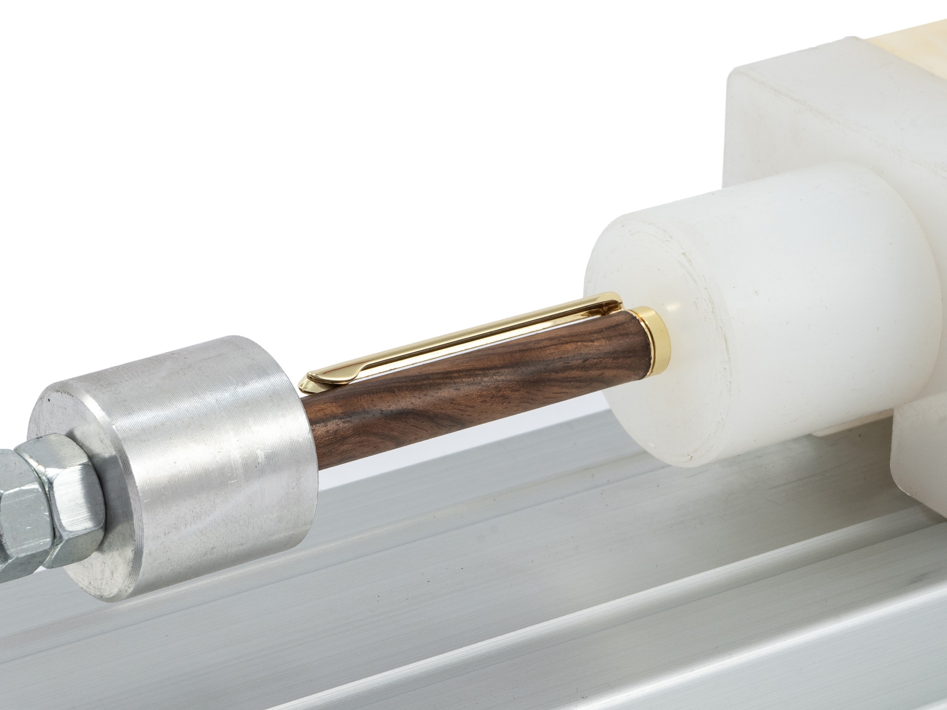 - Kunststoffkappe auf dem Gegenlager für schonendes Pressen auf veredelten Metallteilen