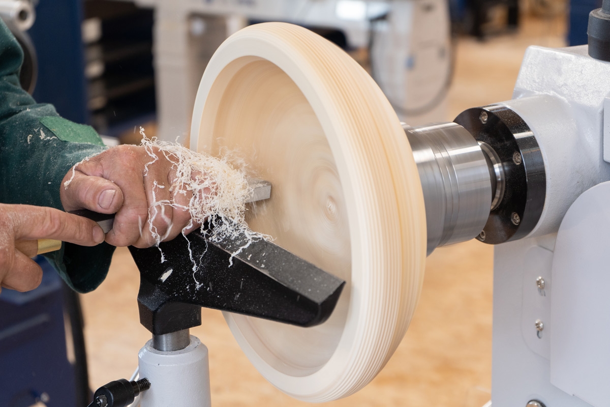 Bei großen und tiefen Querholzarbeiten sind dieser extra starke Flachstahl unentbehrlich für erfolgreiches Drechseln.