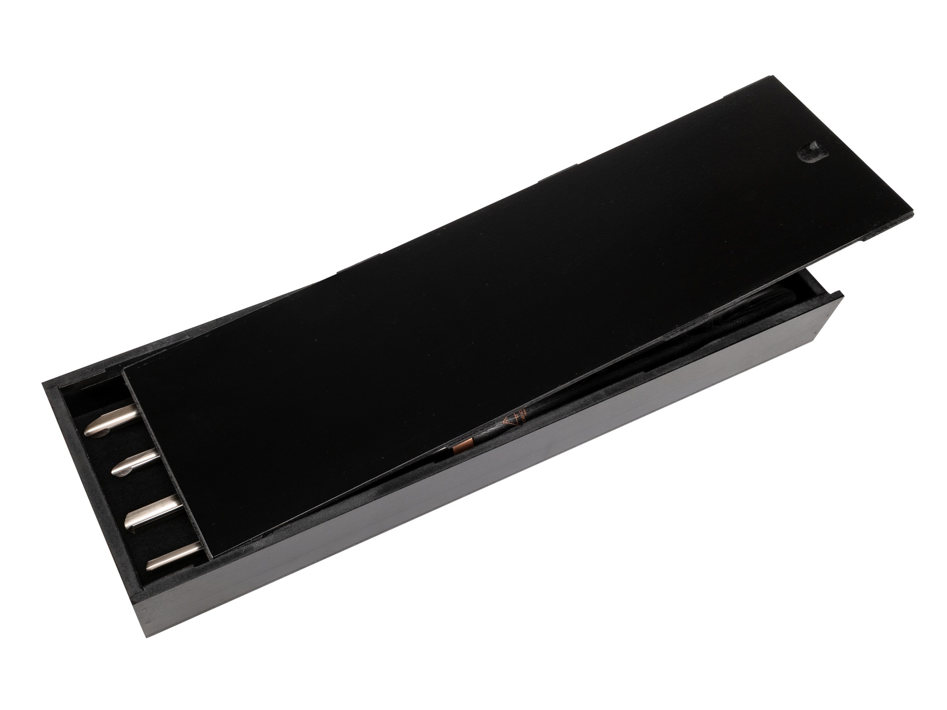 Mit schwarzen Eschenholz-Griffen (360 mm) mit gefrästen Griffenden für optimalen Halt und optisch ansprechender Kupferzwinge. In praktischer Aufbewahrungsbox mit schwarzer Einlage.