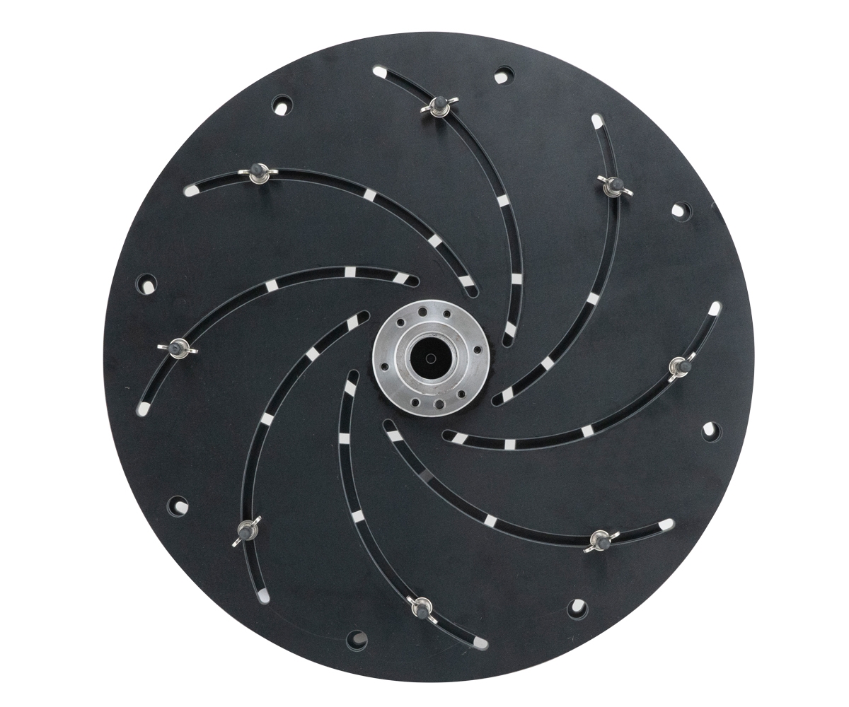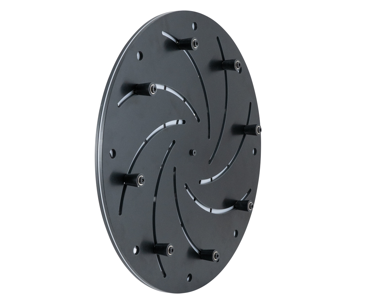 Durch den Verschiebe-Mechanismus können Schalen in unterschiedlichen Dimensionen zur Fertigbearbeitung eingespannt werden. Durch die verformbaren Kunststoffnoppen passen sich die Spannscheiben sehr gut dem Radius des Werkstückes an.