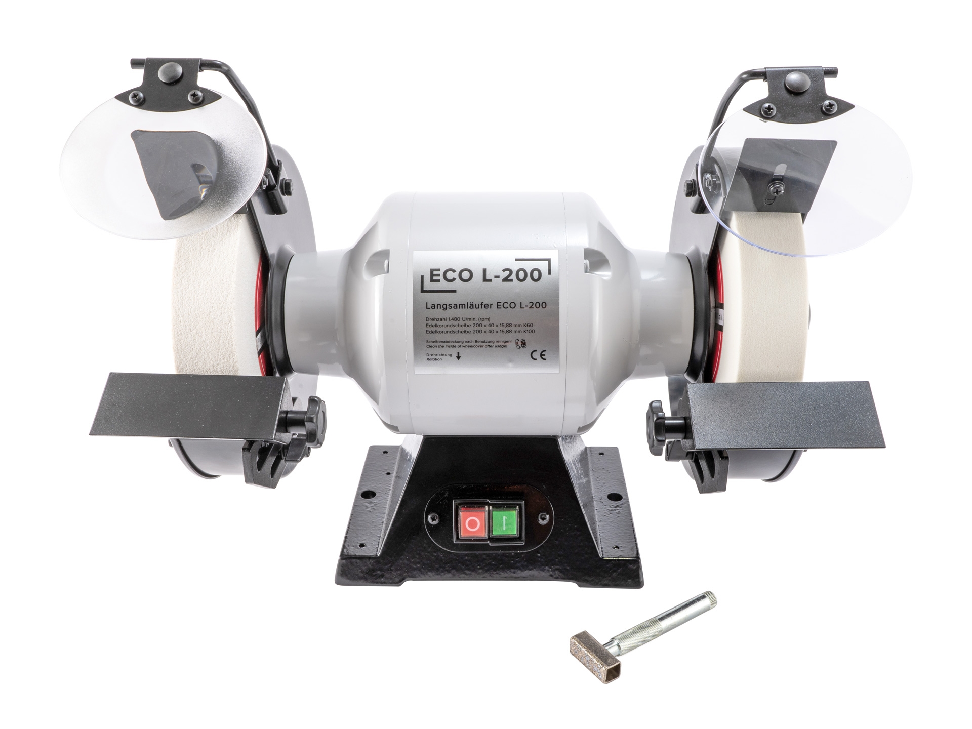 In massiver, schwerer Ausführung mit Gussunterbau und kräftigem Motor. Aufgrund der langsamen Drehgeschwindigkeit ist der Schleifbock ideal geeignet für das Schärfen von Drechselwerkzeugen. Bestückt mit Schleifscheiben mit Durchmesser 200 mm und Breite 40 mm (Körnung 60 und 100). Dies ermöglicht das Umschleifen von HSS Werkzeugen wie auch einen feinen Schliff der Schneide. Inkl. 2 Werkzeugauflagen aus Guss, Schutzvorrichtungen aus Plexiglas und einem Diamant-Abrichter.