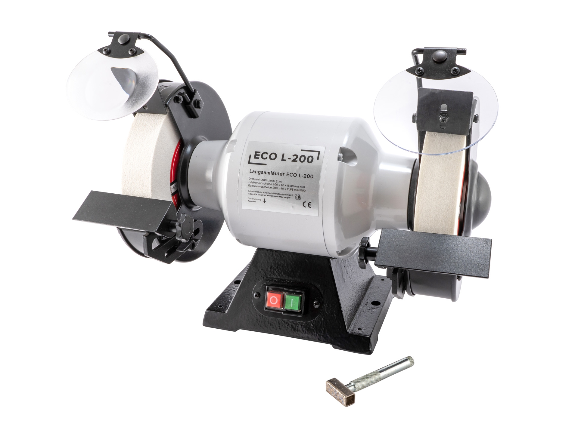 SETVERSION mit zusätzlicher CBN Scheibe! Schwerer, laufruhiger Schleifbock, ideal für Drechsler dank der langsamen Drehzahl von 1.480 U/min!