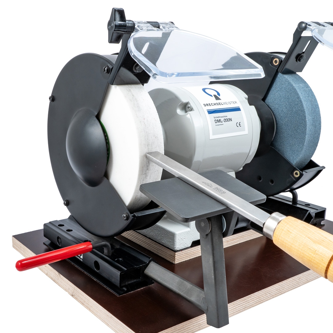 In massiver, schwerer Ausführung mit Gussunterbau und kräftigem Motor. Aufgrund der langsamen Drehgeschwindigkeit ist der Schleifbock ideal geeignet für das Schärfen von Drechselwerkzeugen. Bestückt mit Schleifscheiben mit Durchmesser 200 mm und Breite 40 mm (Körnung 60 und 100). Dies ermöglicht das Umschleifen von HSS Werkzeugen wie auch einen feinen Schliff der Schneide. Inkl. 2 Werkzeugauflagen aus Guss, Schutzvorrichtungen aus Plexiglas und einem Diamant-Abrichter.