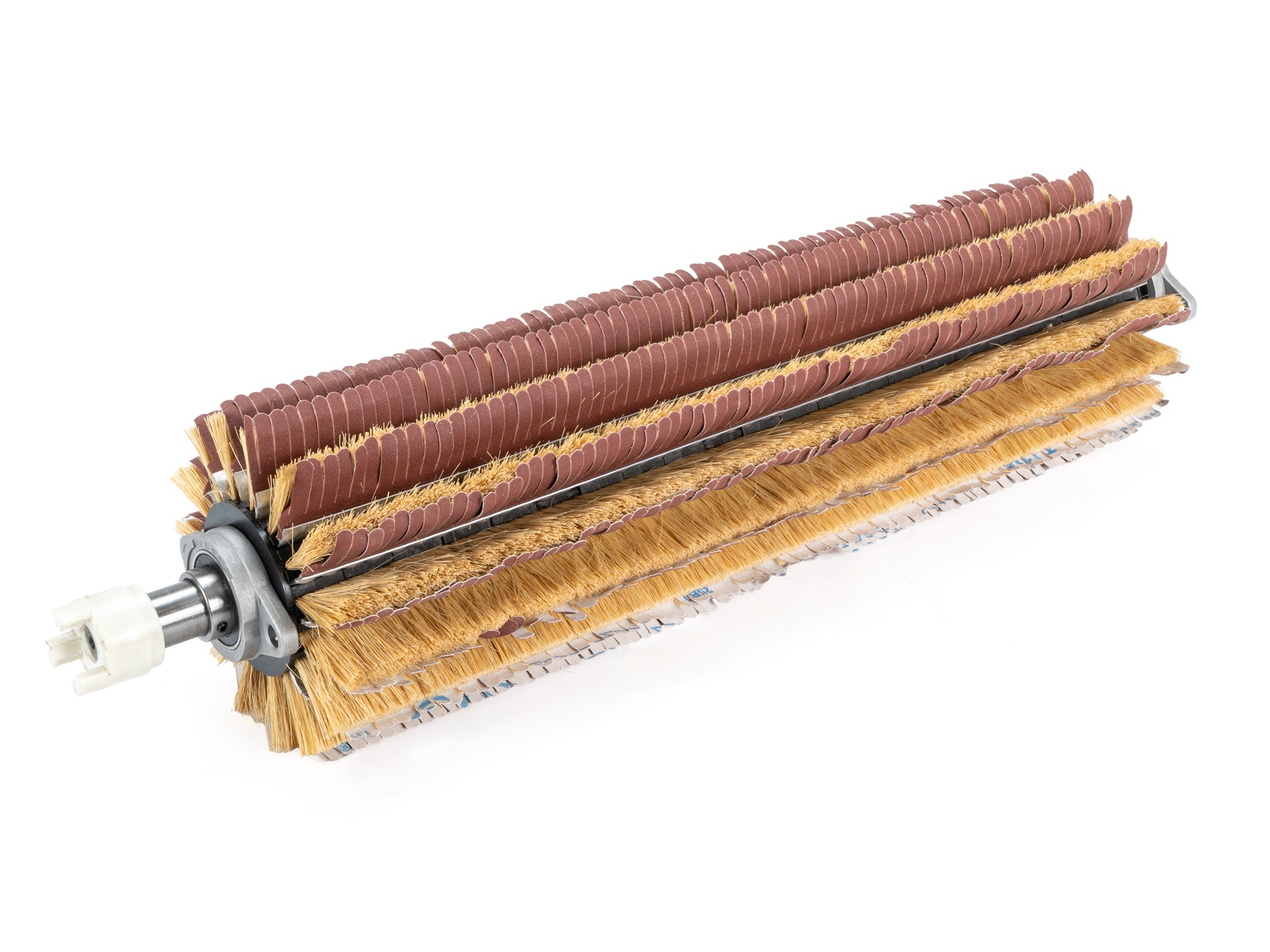 Die Schleifmittelstreifen der Walze (Korn 240) sind mit steifen Borsten hinterlegt.