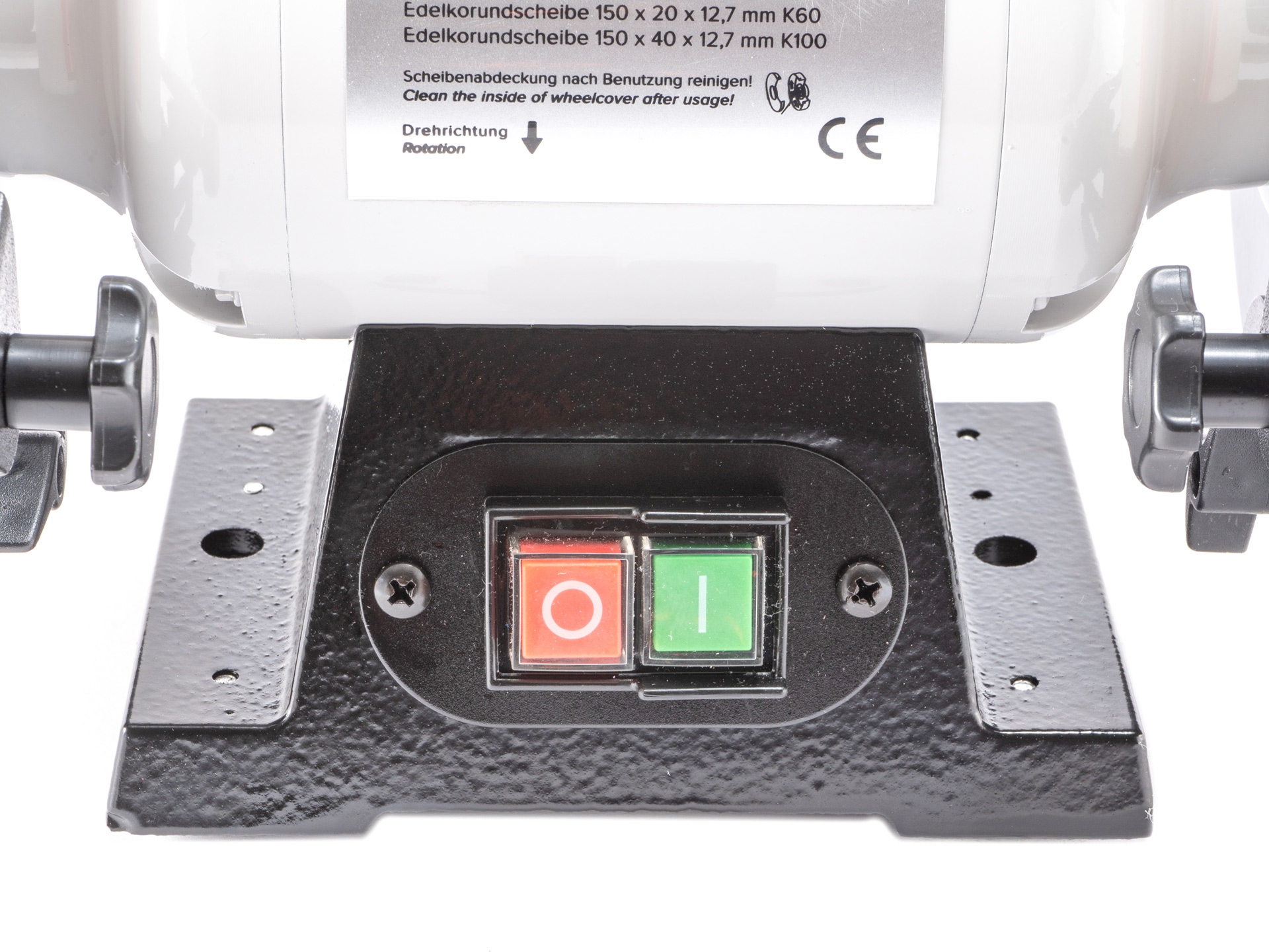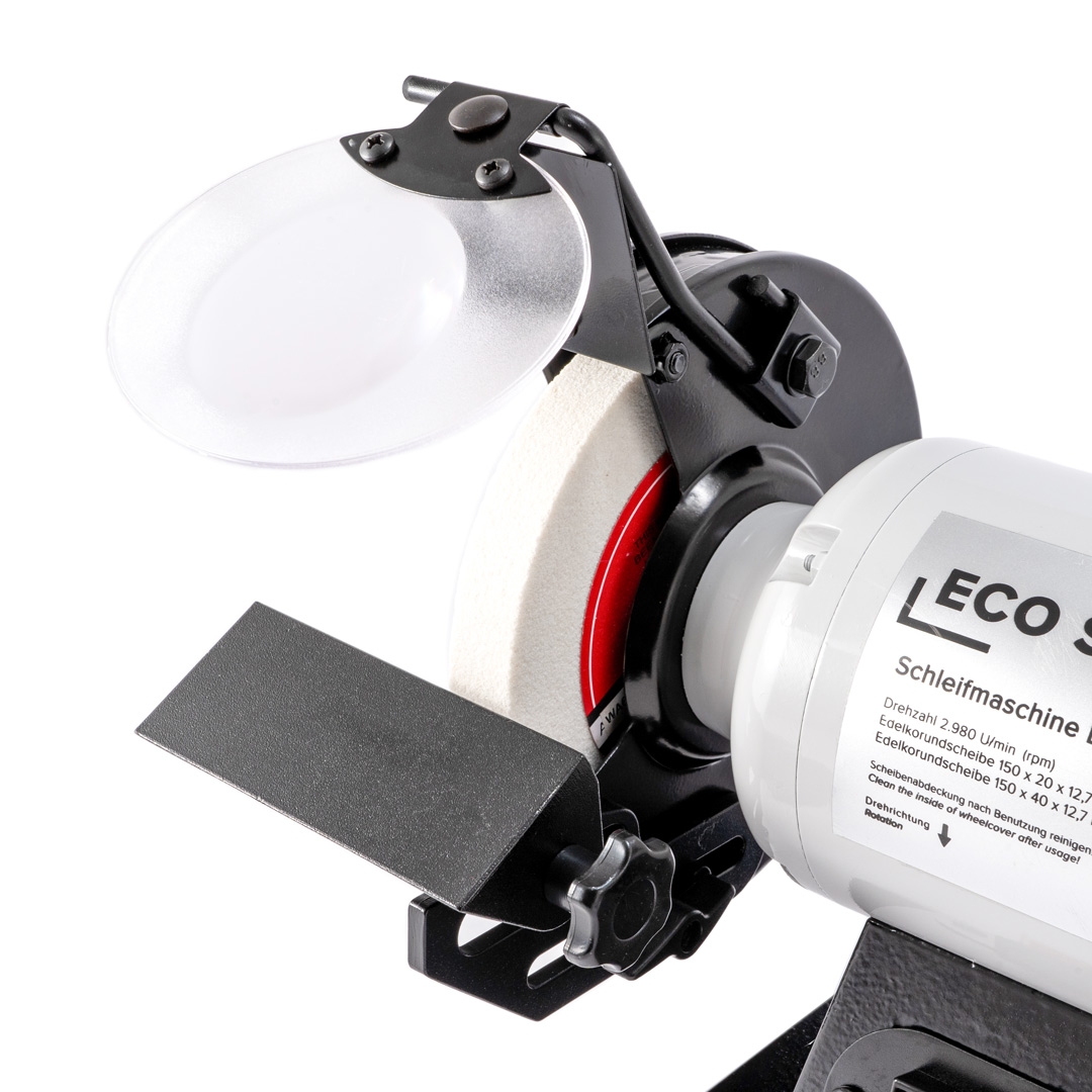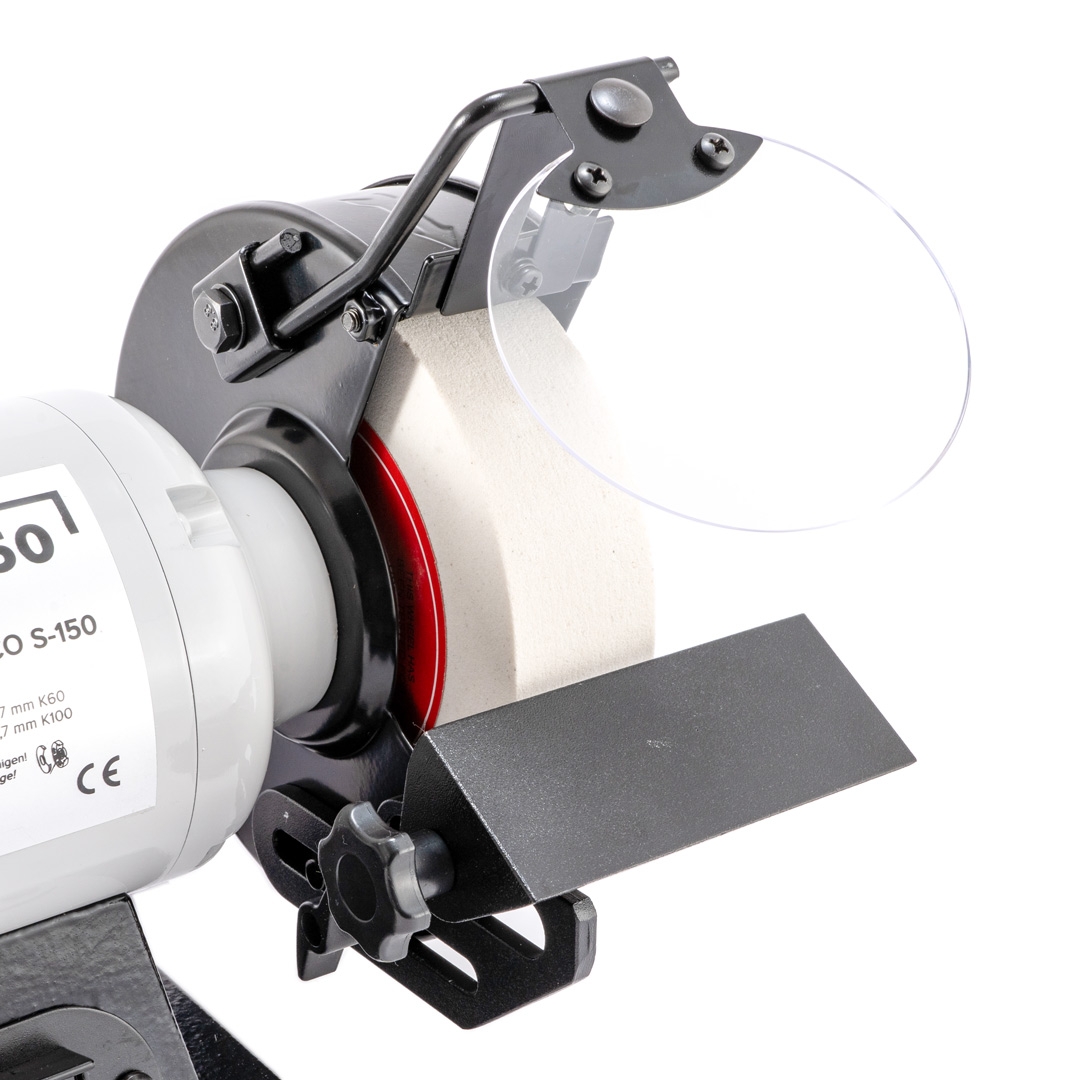 Die 40 mm Scheibe ist aufgrund der Breite auch perfekt zum Schärfen von breiteren Werkzeugen geeignet, z.B. Drechseleisen wie Flachstähle und Drehmeißel. Inklusive 2 Werkzeugauflagen aus Guss, transparenten Schutzvorrichtungen aus Plexiglas und einem Diamant-Abrichter.