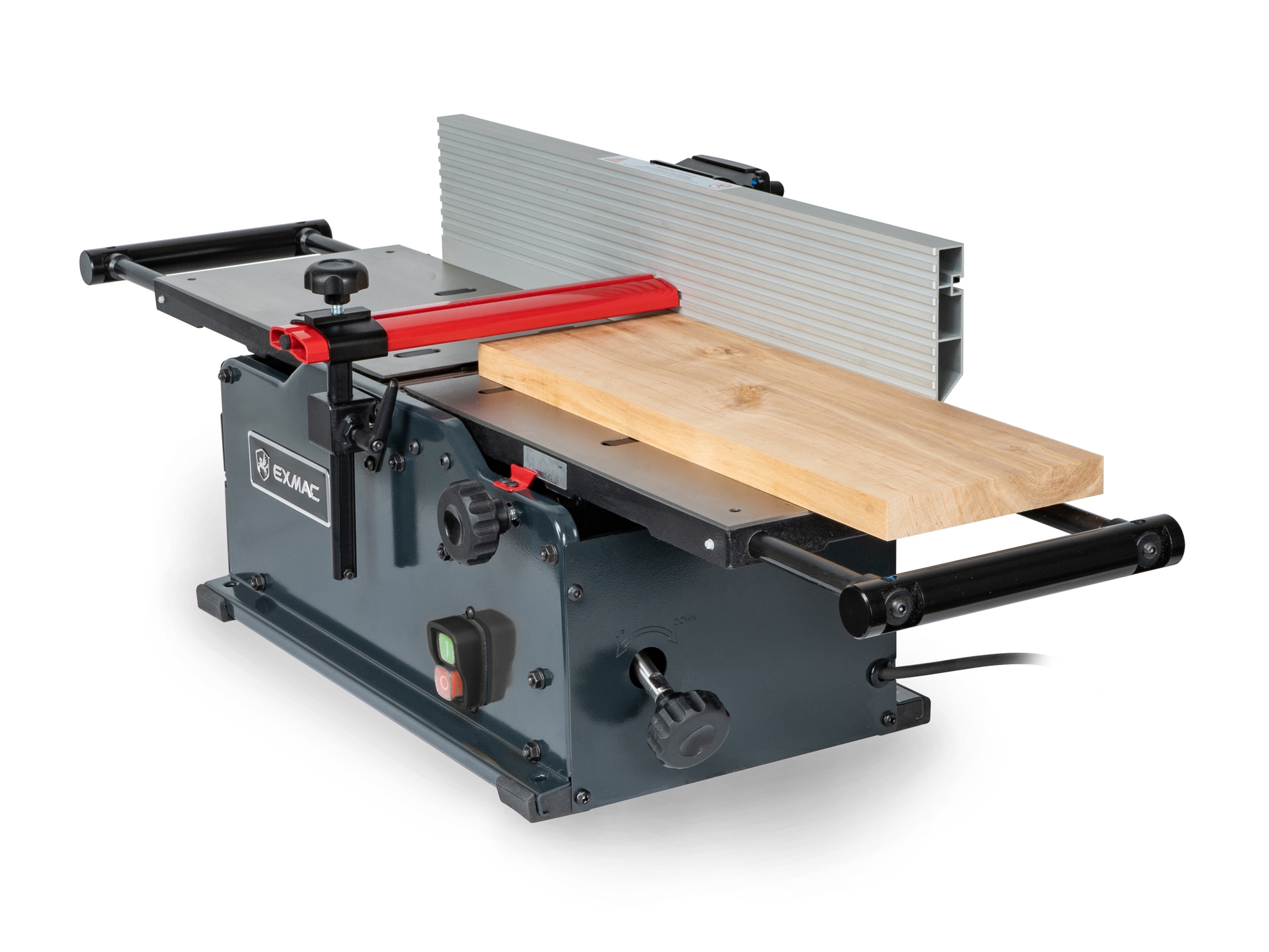Die EXMAC A200 besticht durch ihre solide Bauweise mit in dieser Klasse unschlagbaren massiven Grauguss-Tischen und einer einzigartigen Hobelwelle mit versetzten 4-seitigen Hartmetall- (HW) Wendeplatten.