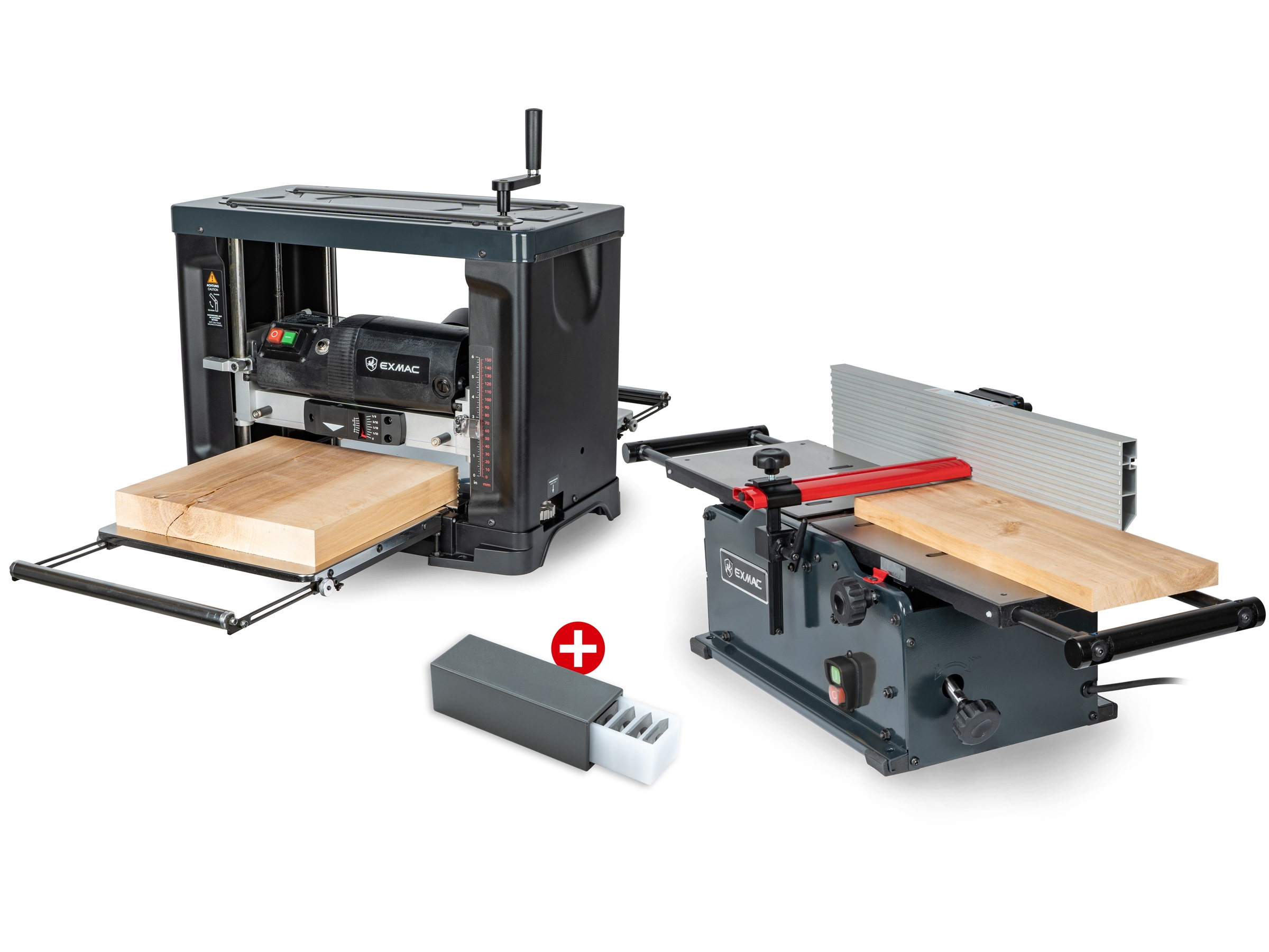 Mit diesem Kombiset erhalten Sie die EXMAC Abrichthobelmaschine A200 und die EXMAC Dickenhobelmaschine D330 mit einer zusätzlichen Ersatzpackung von hochwertigen HW-Wendemessern.