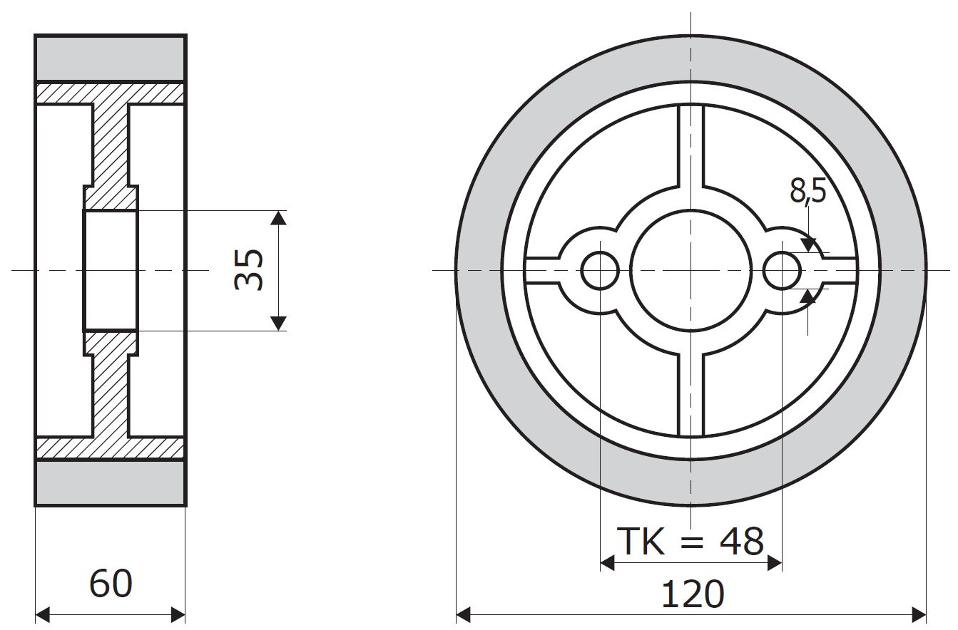 Typ 2: D = 120 mm | B = 60 mm