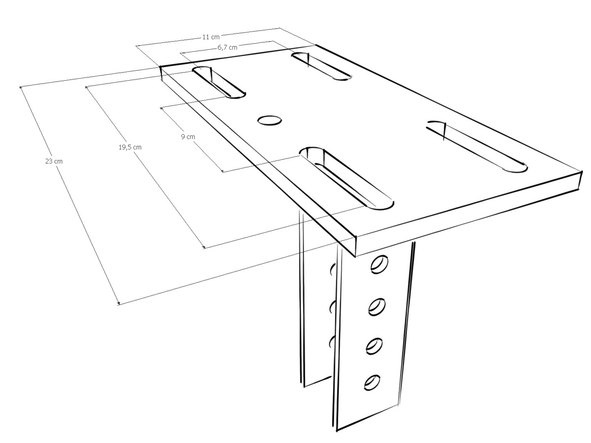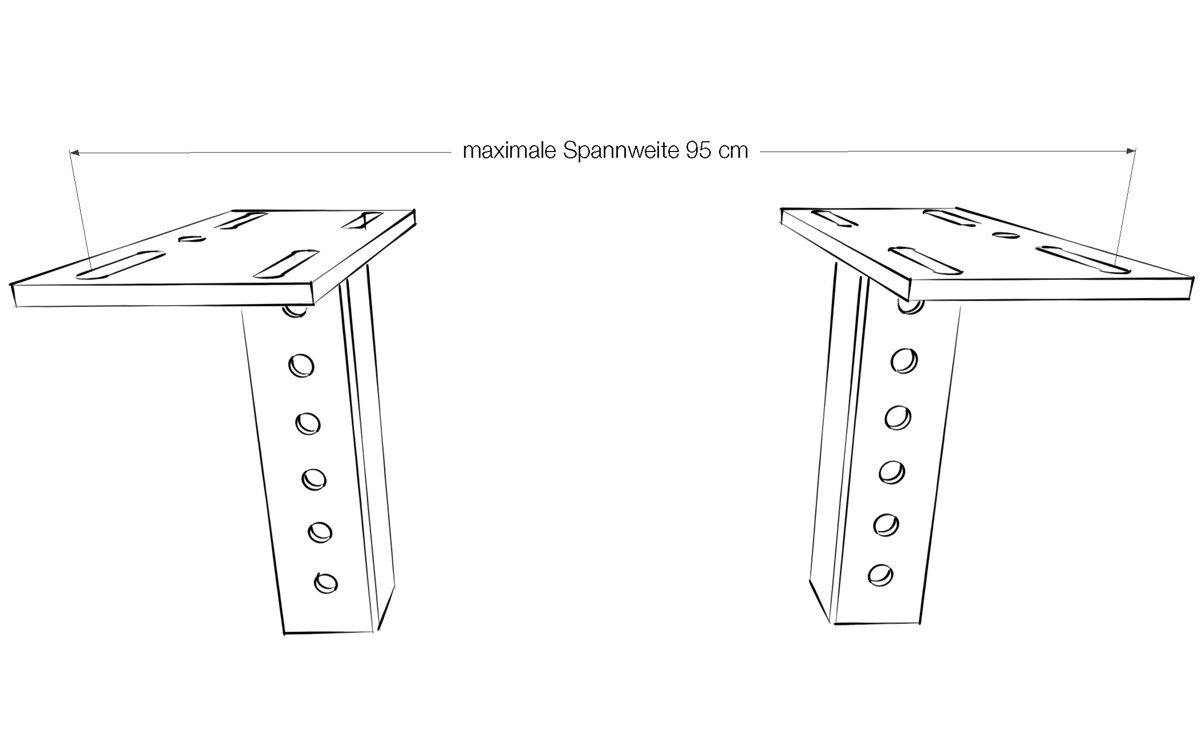 (Bestehend aus einer Fußeinheit und verstellbarer Querstrebe. Die Abmessungen, Spannweite und Montagefläche sind ident mit der Haupteinheit.)