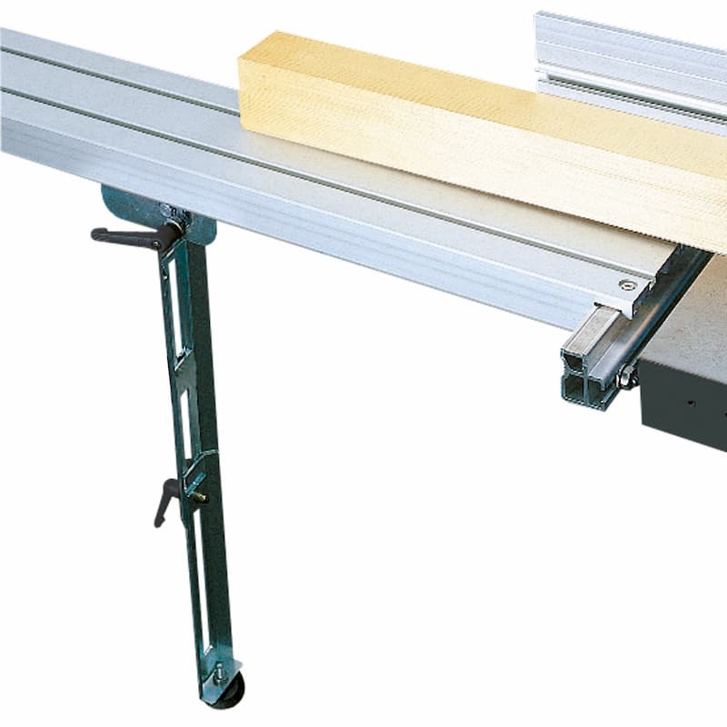 - Tischverlängerung mit Abstützfuß für Aufnahme auf allen Maschinen mit Rundwellenführung.