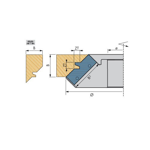 - Bestückt mit 2 HW-Wechsel-Hauptschneiden in Trapezzinkenform (1 Trapezzinke)