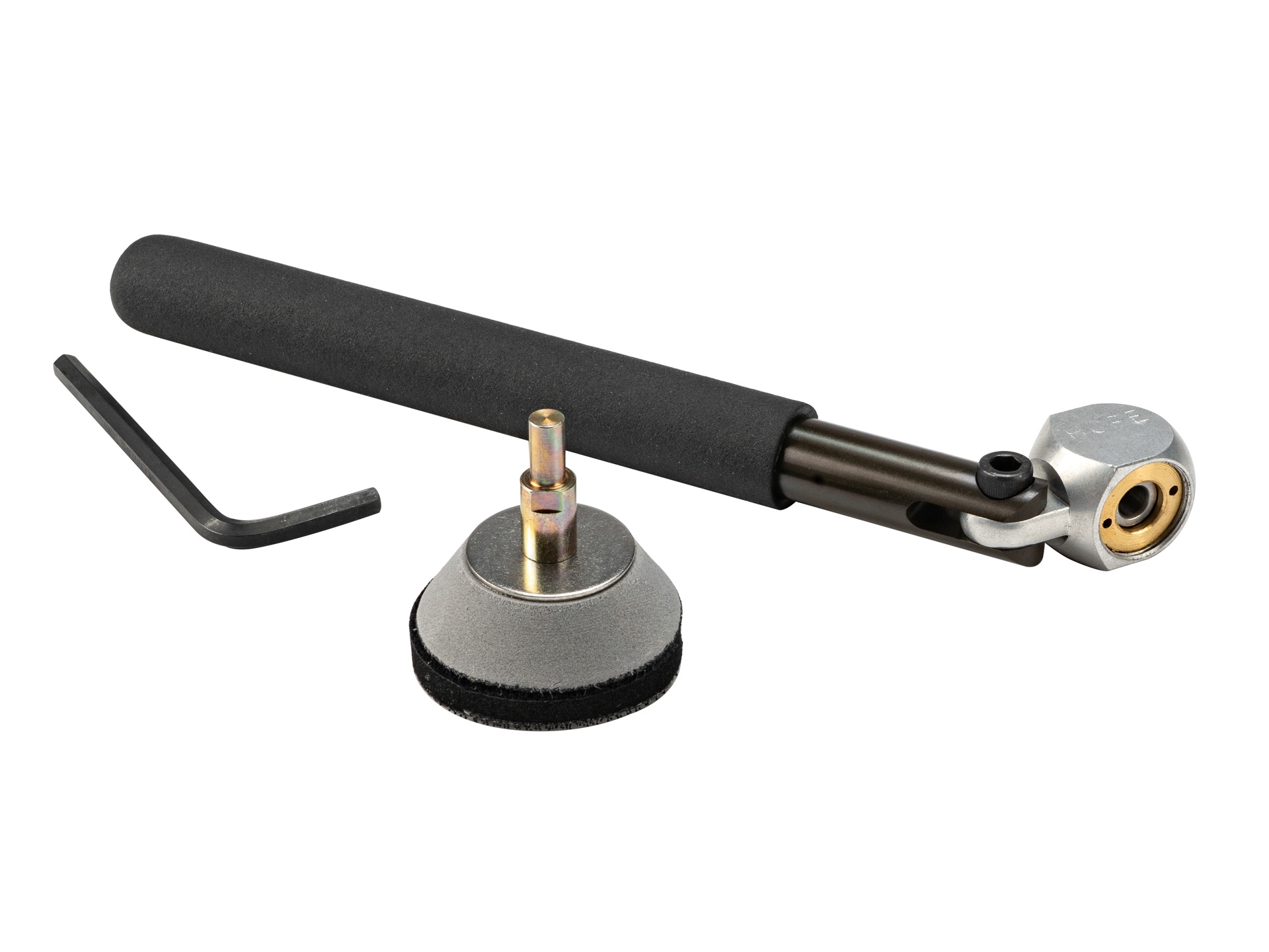 Diese neu entwickelte Schleifvorrichtung mit einem Schwenkkopf mit SCHNELLWECHSEL-SYSTEM passt sich dank der einzigartigen Form und der (optionalen) weichen Zwischeneinlage der Form des Werkstückes an.
