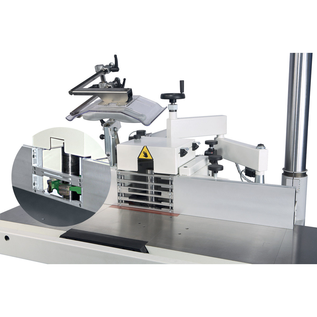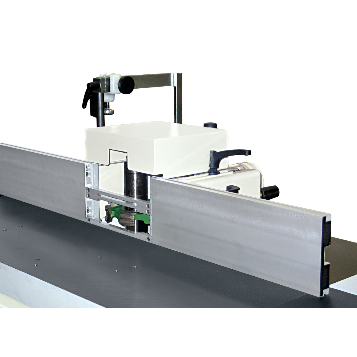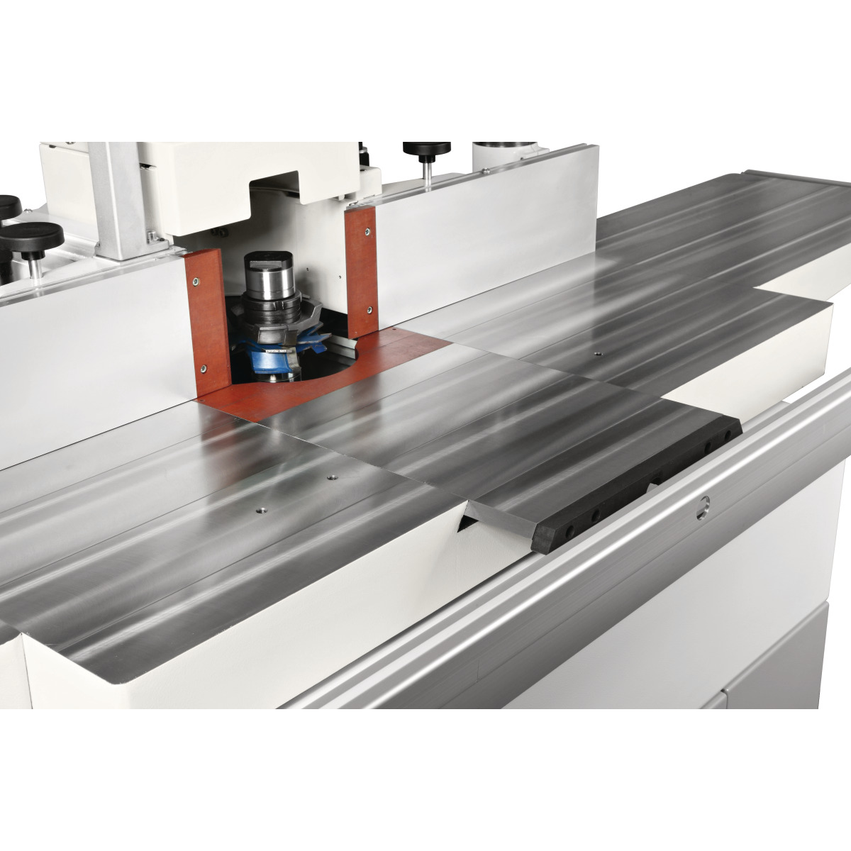 - Fräsanschlag mit Feineinstellung, linear verstellbar über Handräder von der Bedienerfront aus