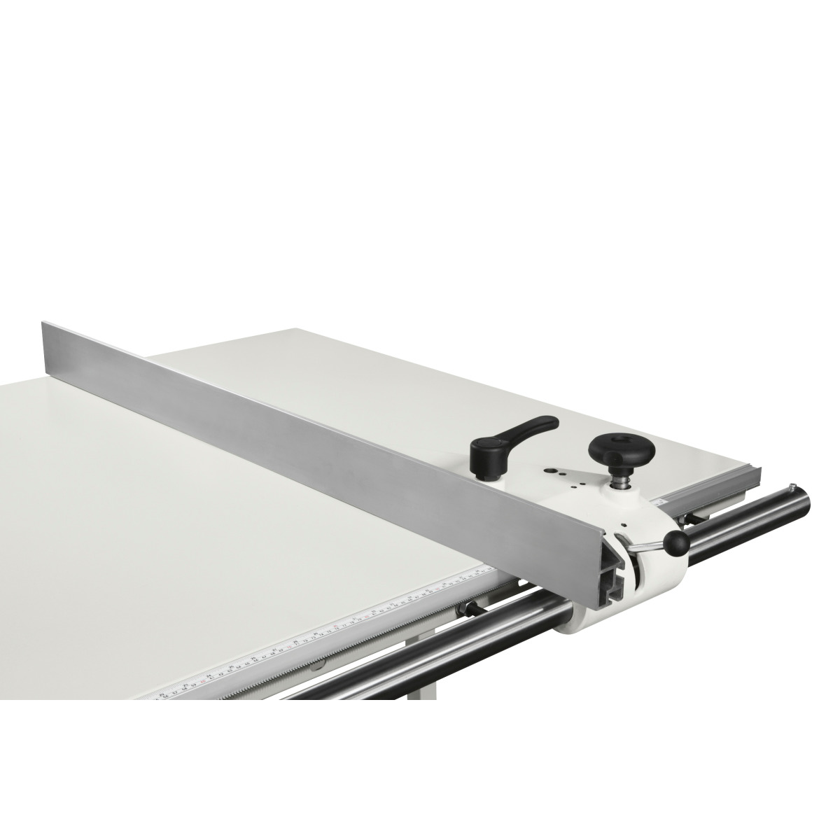- Leichtgängiger und präziser Formatschiebeschlitten aus eloxiertem Aluminium mit bewährtem und dauerhaft leichtgängigem Kugelkontaktsystem auf gehärteten, 10 Jahre Garantie auf Verschleiß der Führungsbahnen