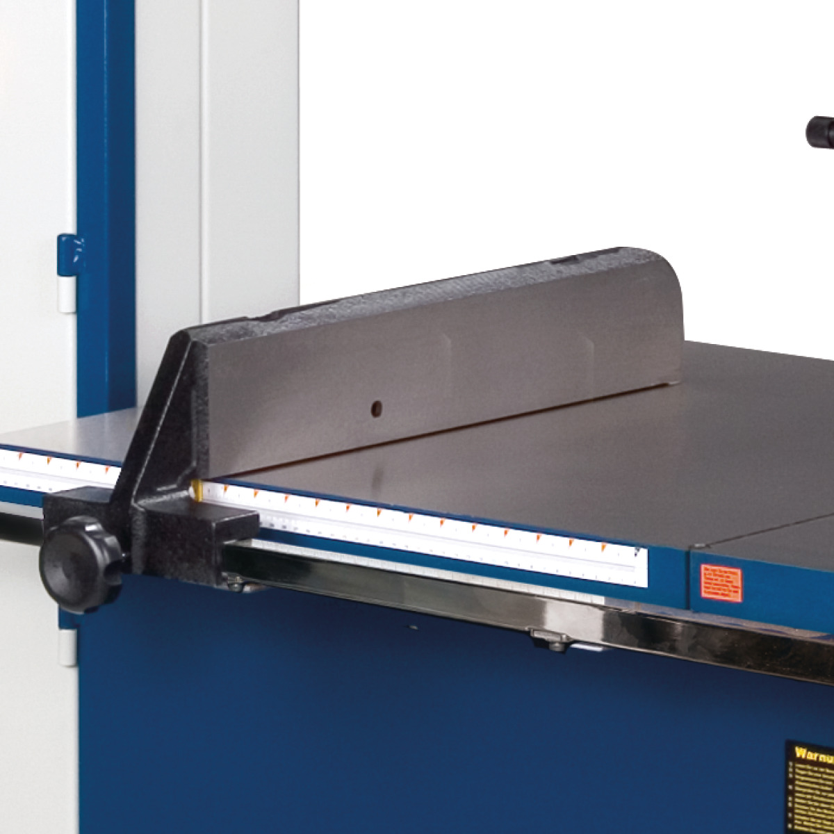 - Großdimensionierter Grauguss-Sägetisch aus einem Stück, schwenkbar von 0° bis +45° mit geschliffener und polierter Oberfläche
