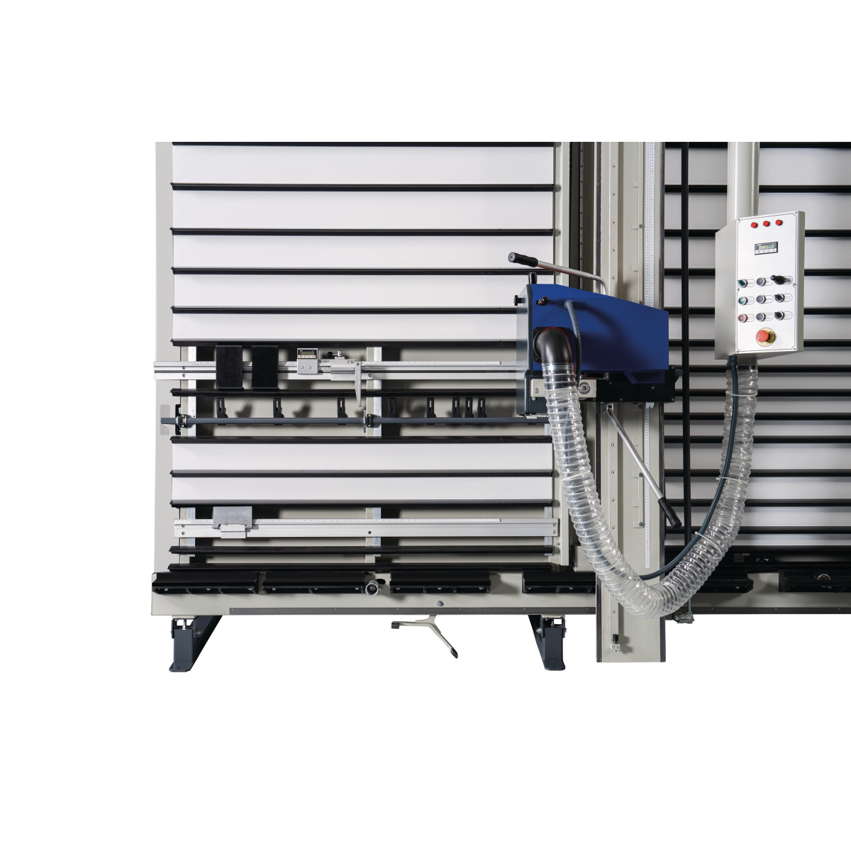 Vertikale Plattensäge mit Spannsystem und Staubabsaugung