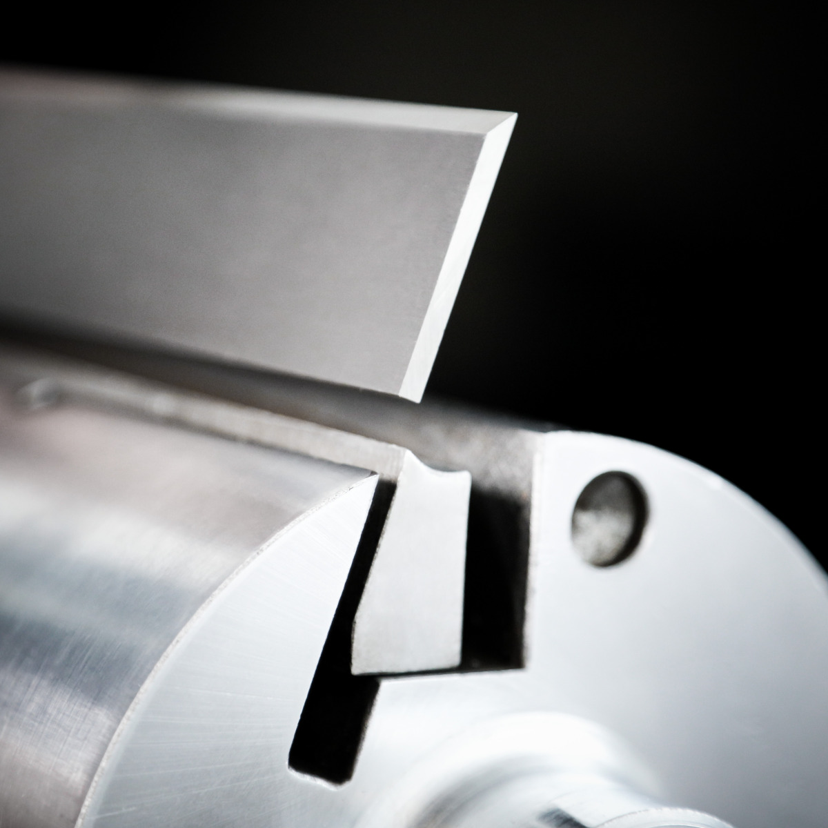 - Eine kleine Halterung am Messerträger fixiert künftig stets sowohl den Träger wie auch das Hobelmesser auf dem korrekten Messerflugkreis