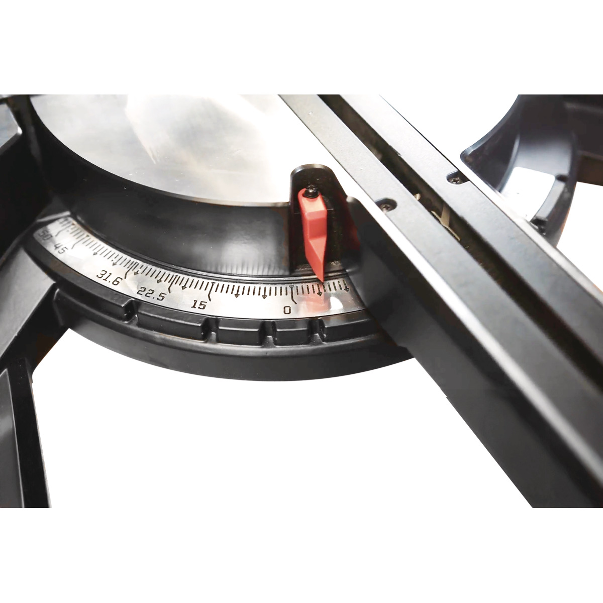 - Serienmäßig mit stufenlos einstellbarer Doppelgehrung und Doppelneigung