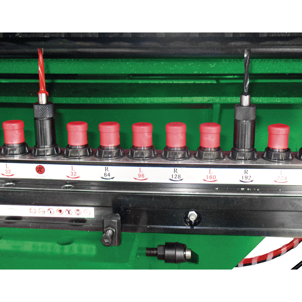 - Bohraggregat mit 21 Spindeln pneumatisch schwenkbar von 0 bis 90 Grad