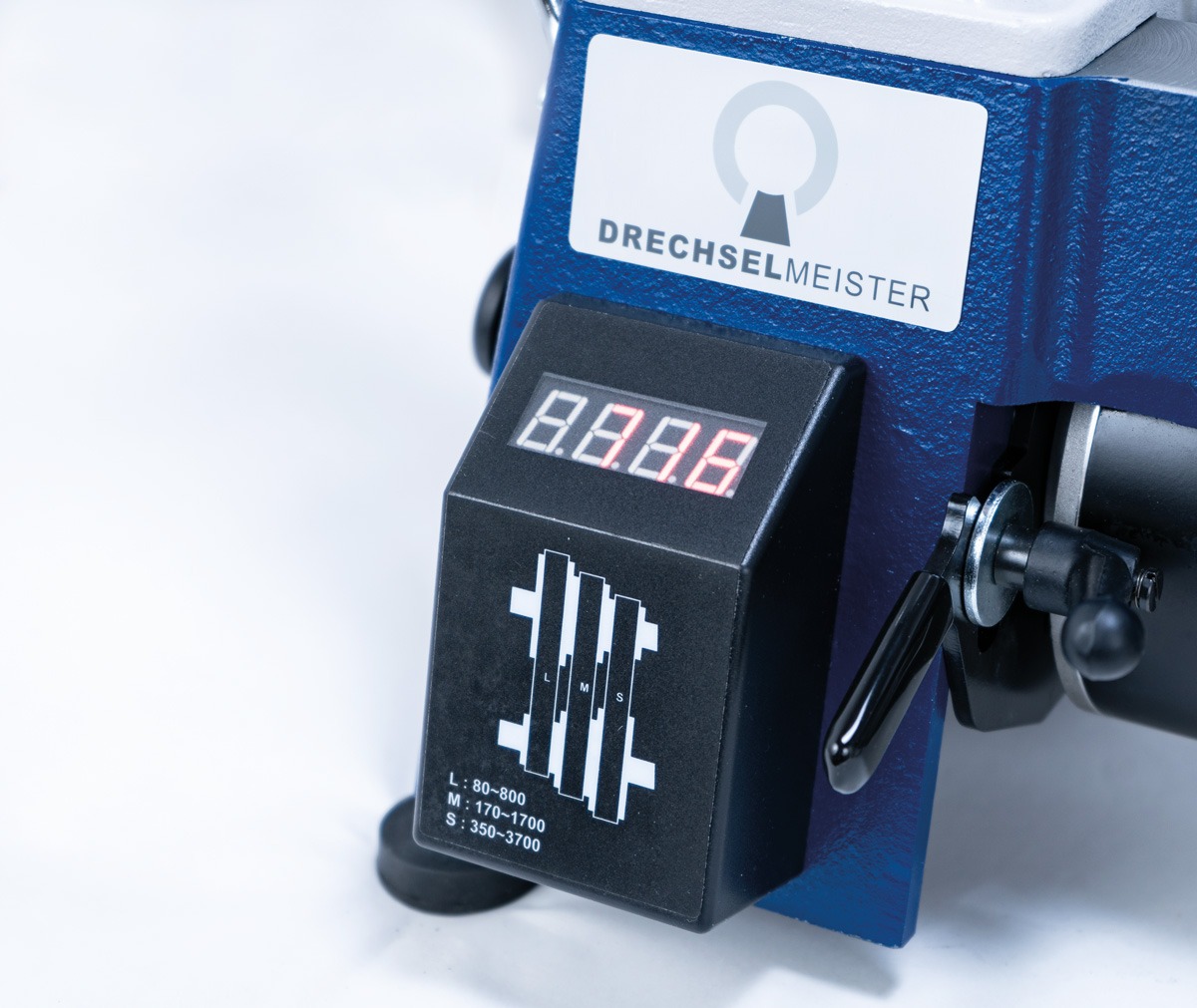 - 3 Riemenstufen / Geschwindigkeiten stufenlos regulierbar: 80 – 800 / 170 – 1.700 / 350 – 3.700 U/min