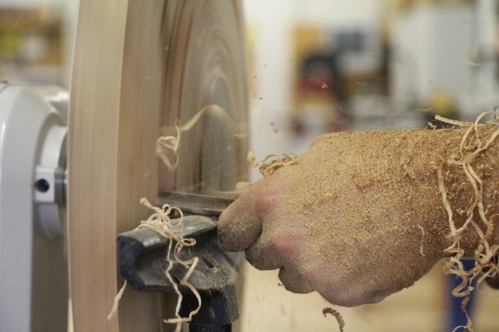 Die MIDI PRO hat ein kleines Aufstellmaß trotz massiver Bauweise und kann im Gegensatz zu größeren Standmaschinen nach dem Arbeiten platzsparend verstaut werden. - Als Zweit-Drechselbank für ambitionierte Drechsler