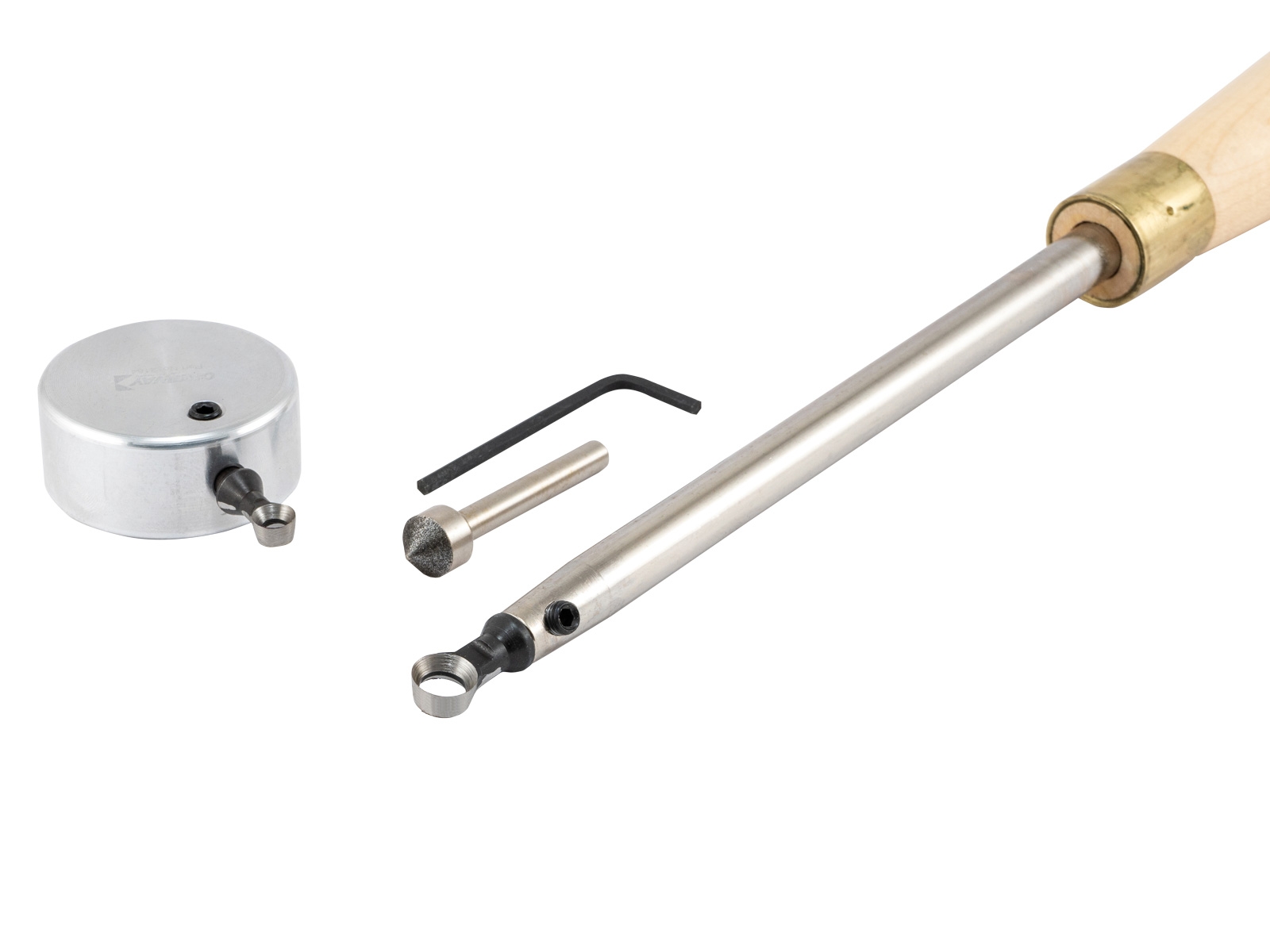 - Handgriff (Naturholz, lackiert, Länge ca. 385 mm lang) mit Werkzeugträger (Gesamtlänge Handgriff mit Werkzeugträger: ca. 570 mm)
