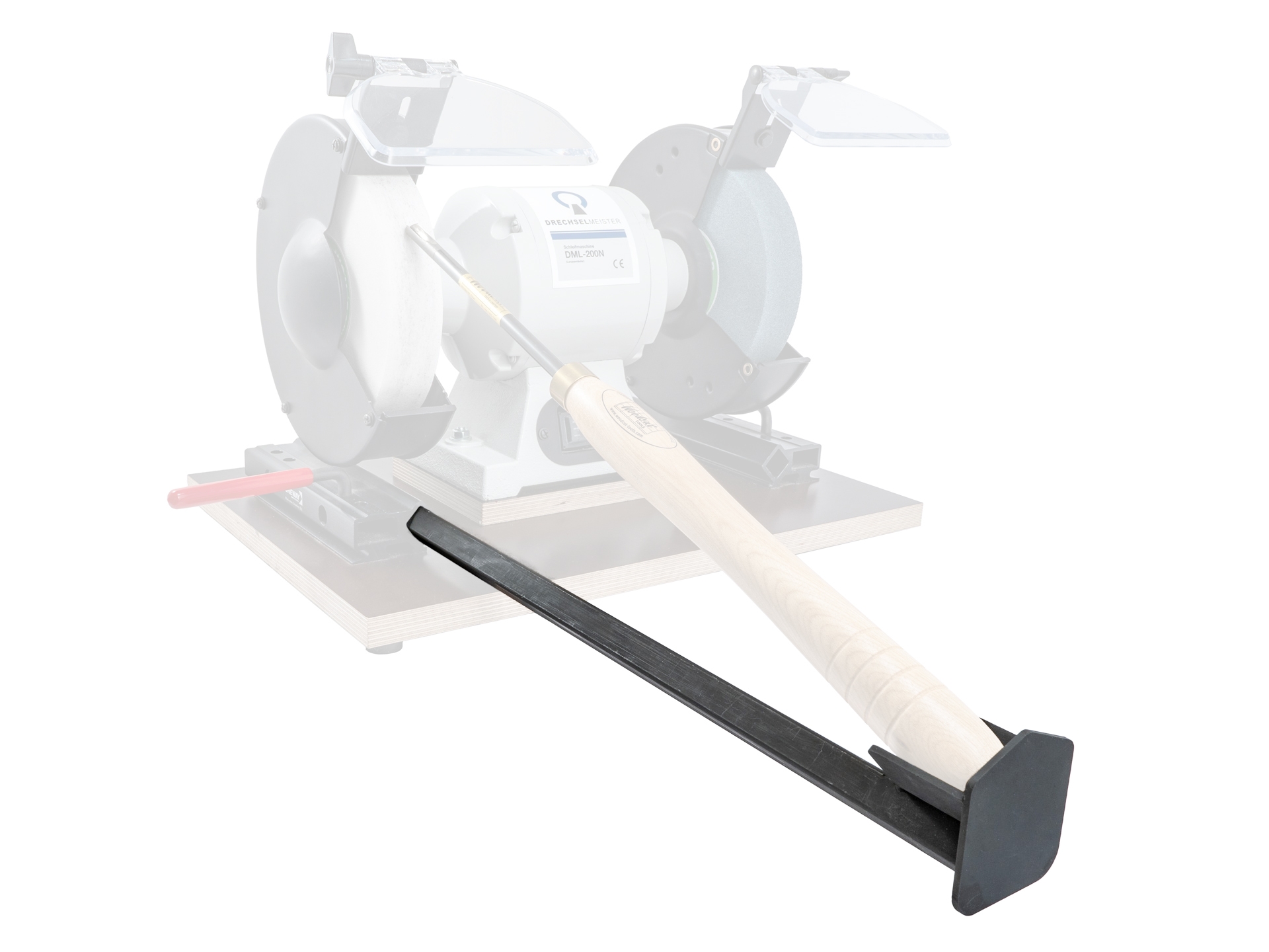 Verwenden Sie den V-Arm an Ihrem ONEWAY WOLVERINE Schärfsystem, um Drechselwerkzeuge entweder direkt oder mit Hilfe der Vari-Grind Schärfhilfe bzw. der Schärfhilfe für Meißel an die Schleifscheibe zu führen.