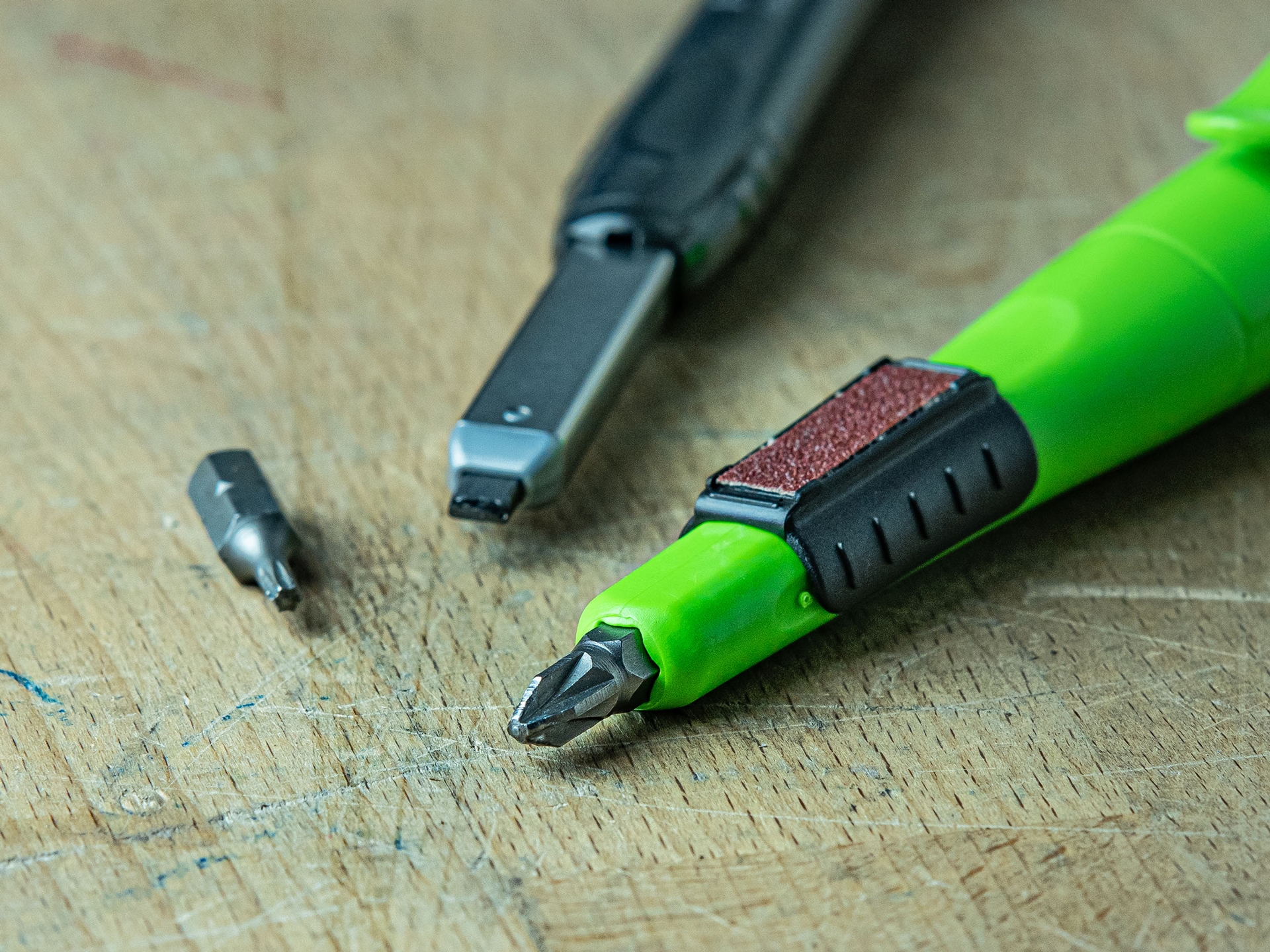 Dieser robuste Zimmermanns-Druckbleistift wird wie sein kleiner Bruder ebenfalls in einem praktischen und fest sitzenden Köcher verwahrt. Dank dem stabilen Clip hält der Köcher fest in der Tasche und der Stift lässt sich mit einer Hand ziehen ohne unabsichtlich herauszufallen. Am Köcher ist ein Minenschärfer angebracht um bei feineren Markierungen die Mine zurecht zu schleifen. Spitzen muss man diesen Stift nie, einfach nachdrücken und es geht weiter. Der automatische Minenvorschub auf Knopfdruck funktioniert dank einer einzigartigen Druckmechanik in gut dosierbaren Schritten, die Konstruktion ist bestens gegen Staub- und Nässe geschützt. Die verschiedenen als Zubehör erhältlichen Minen sind ganz einfach von hinten Nachfüllbar und machen diesen Stift so langlebig und nachhaltig. Kurz um: DAS Markierungswerkzeug für professionelle Handwerker.