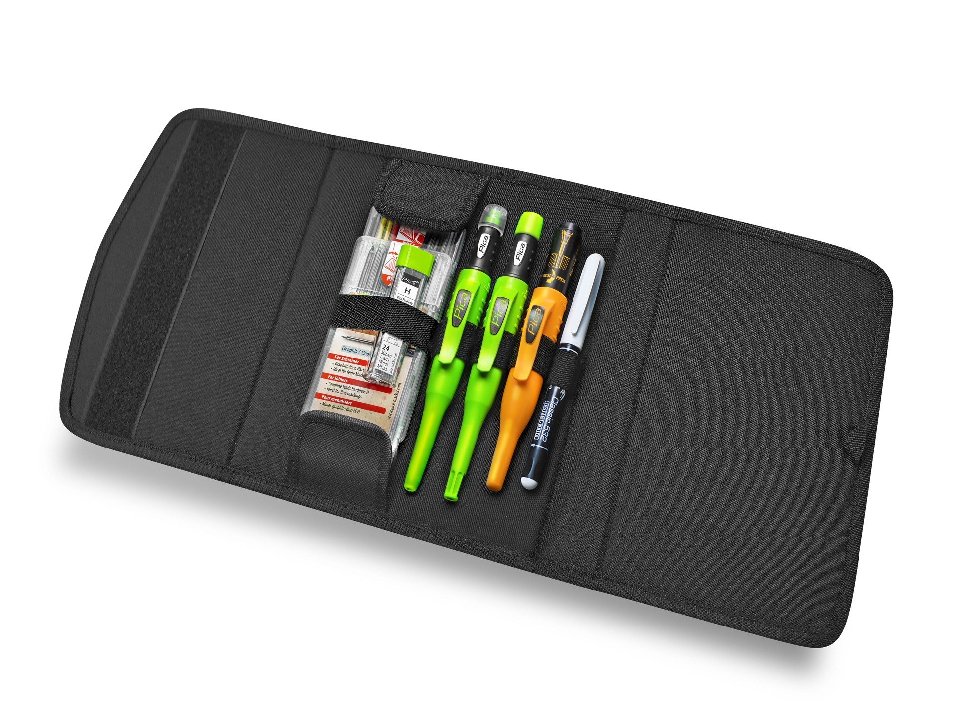 Perfekt für Tischler und "Holzwürmer" abgestimmtes Marker- und Stifte-Set mit passenden Ersatzminen in einer hochwertigen Aufbewahrungstasche.