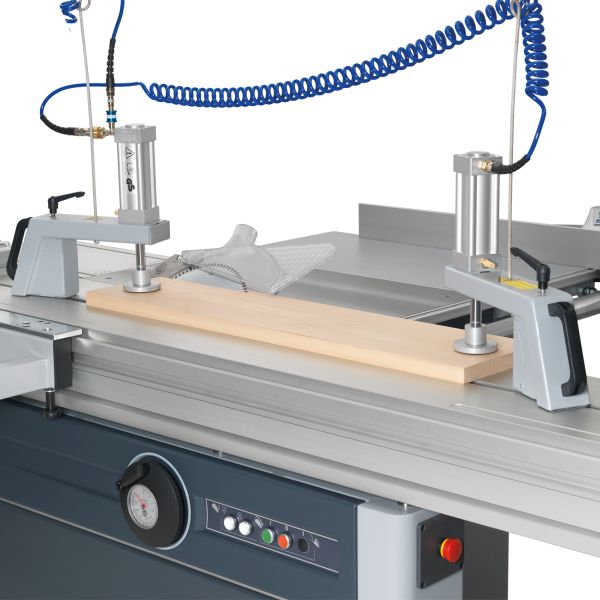 Bequemes Klemmen von Werkstücken bei maximaler Flexibilität. Einsetzbar auf allen Formatkreissägen und Fräsmaschinen mit Schiebetisch. Einfaches Nachrüsten dank magnetischer Halterung.