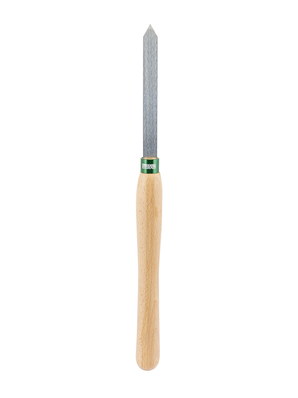Abstecher zweiballig. Wird hauptsächlich zum Trennen des fertigen Werkstücks vom Restholz verwendet. Mit der richtigen Technik können auch Muster erzeugt werden.