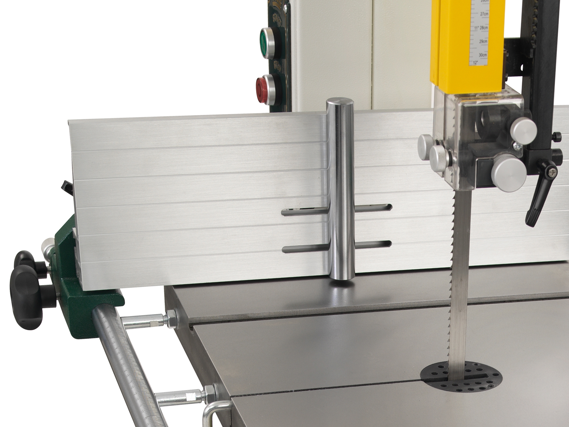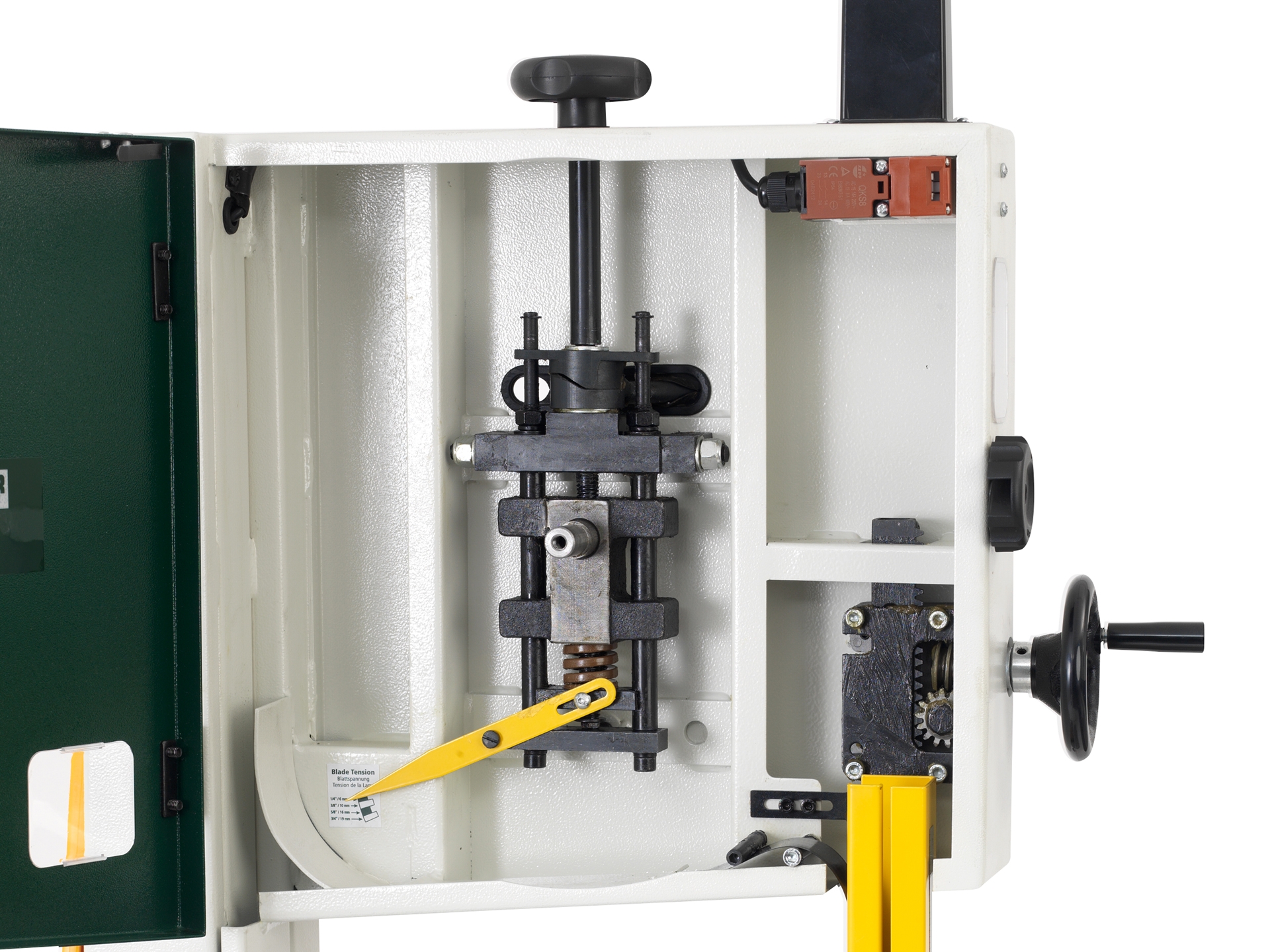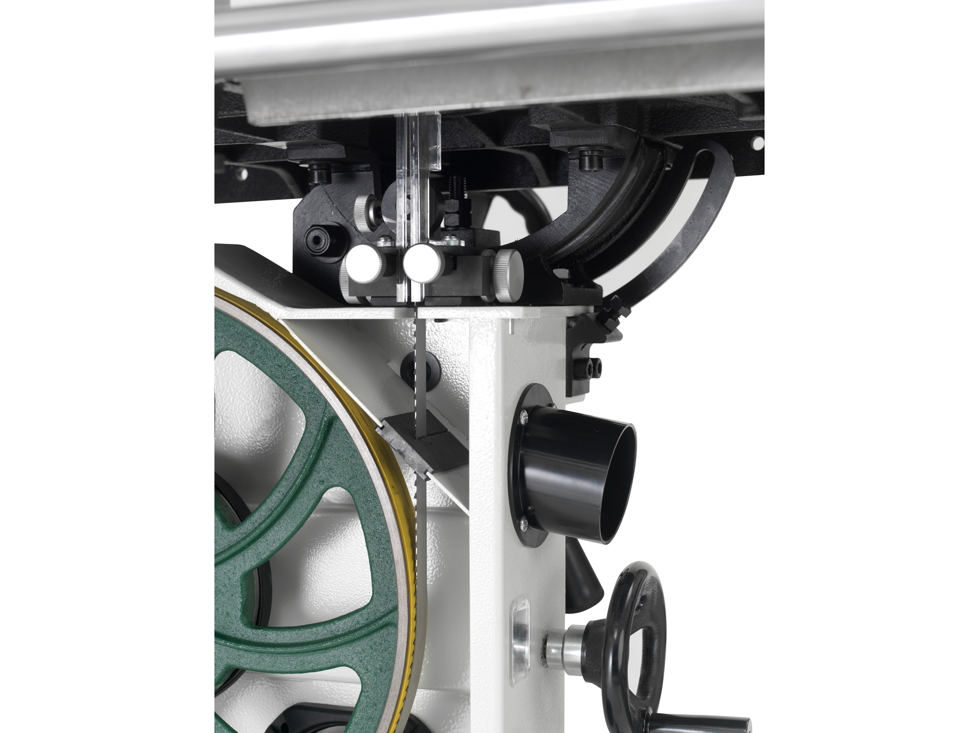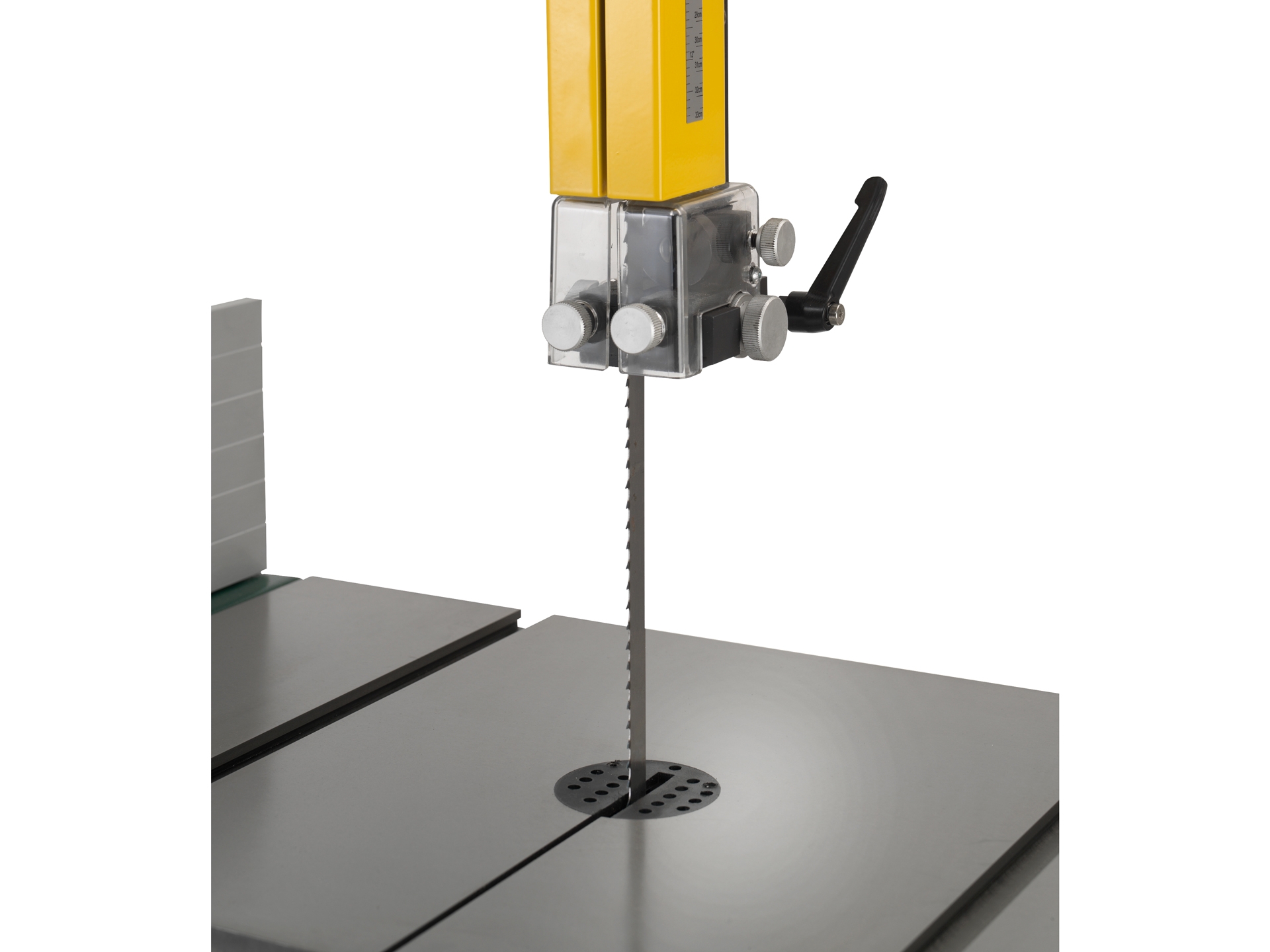 - Optimierter Aufbau und Anordnung der Bandführungselemente - sofortige Sichtbarkeit der perfekten Position des Bandsägeblattes