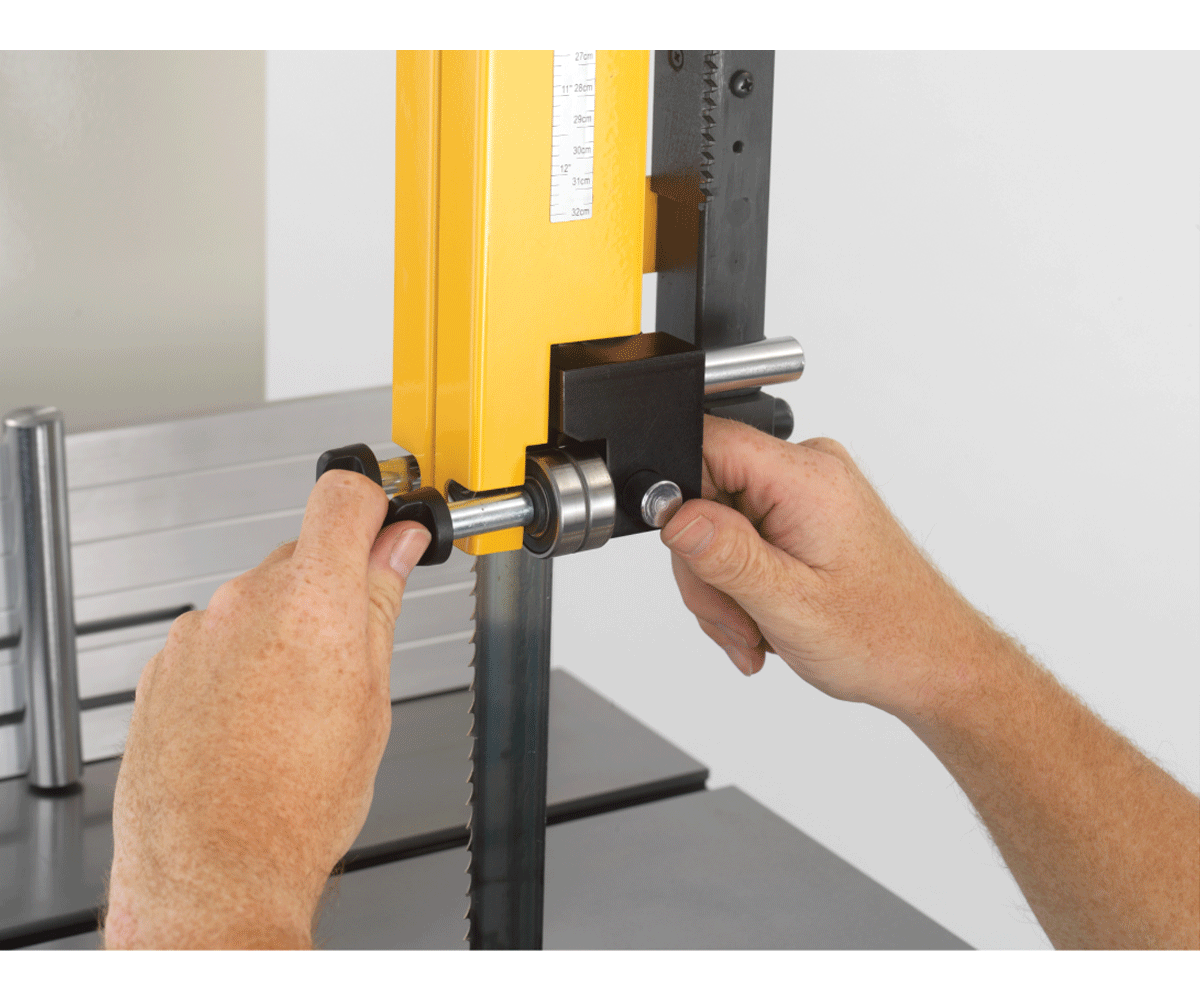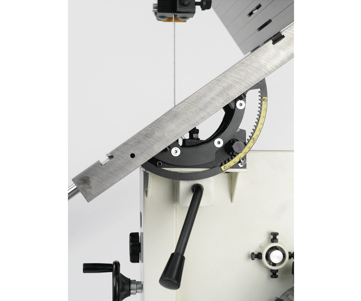 - Die Feineinstellung der Bandspannung über Gewinde ermöglicht so auch eine einfache und schnelle Korrektur um Bandbreite, Zahnteilung und Schnittaufgabe perfekt miteinander abzustimmen.