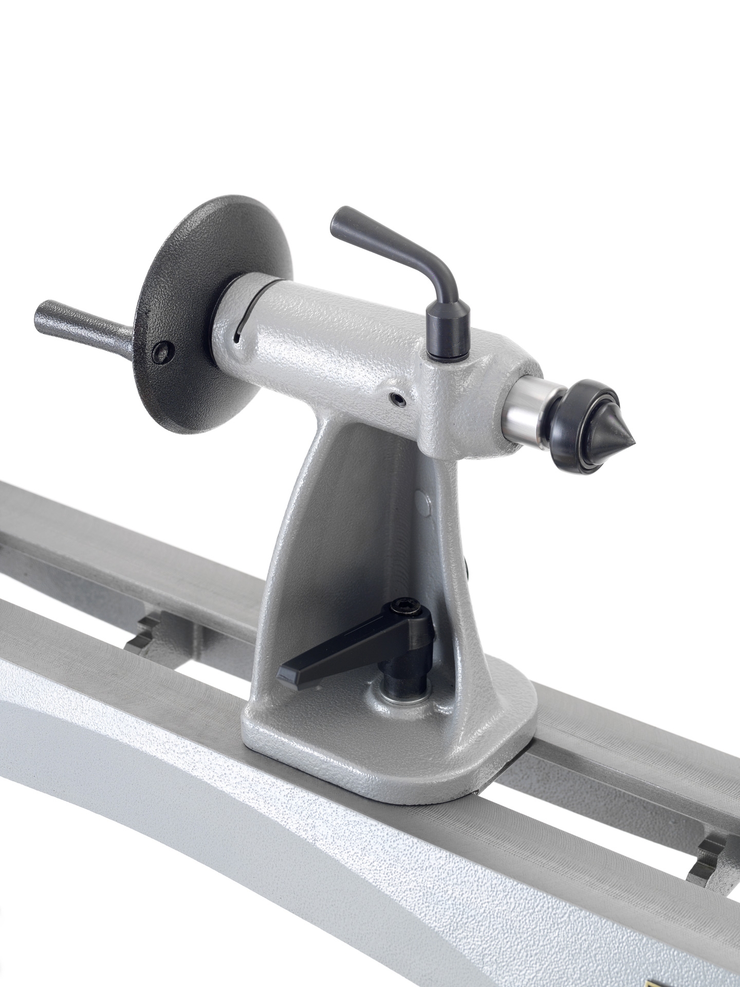 - Der Reitstock ist mit einem soliden, großen Handrad ausgestattet. Die Kraftübertragung für den Spindelhub lässt sich so mit geringem Aufwand umsetzen