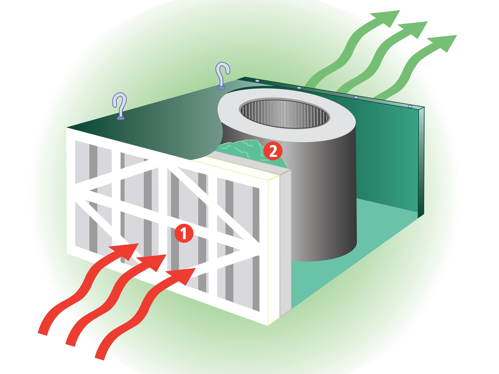 - Die Filterung erfolgt 2-stufig (filtert 90 % der Luftstäube bis zu 1 Micron)