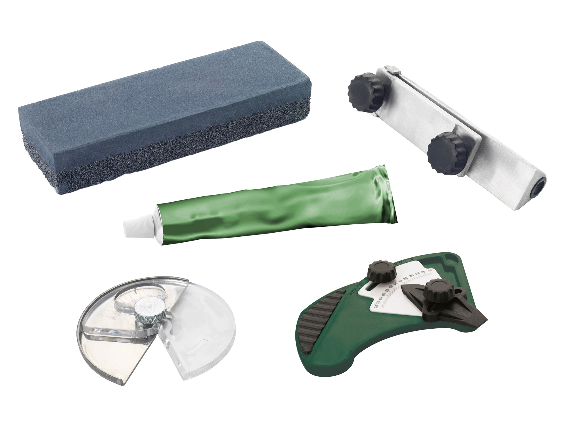 - Die einstellbaren Schleifvorrichtungen erlauben eine hohe Wiederholgenauigkeit. Sogar Rundungen wie z.B. bei Schnitzwerkzeugen können präzise und wiederholbar nachgearbeitet werden.
