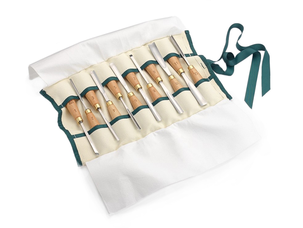 Umfangreicher 12-teiliger Schnitzeisensatz - geeignet zum Schnitzen von Blumenmotiven, Lünetten, Zierbändern, Buchstaben und vieles mehr.