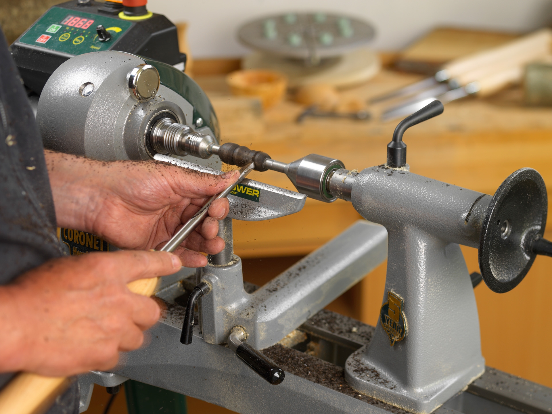 - Die verlängerte Einpunktspitze ermöglicht einen besseren Zugang zum Werkstück am Reitstock