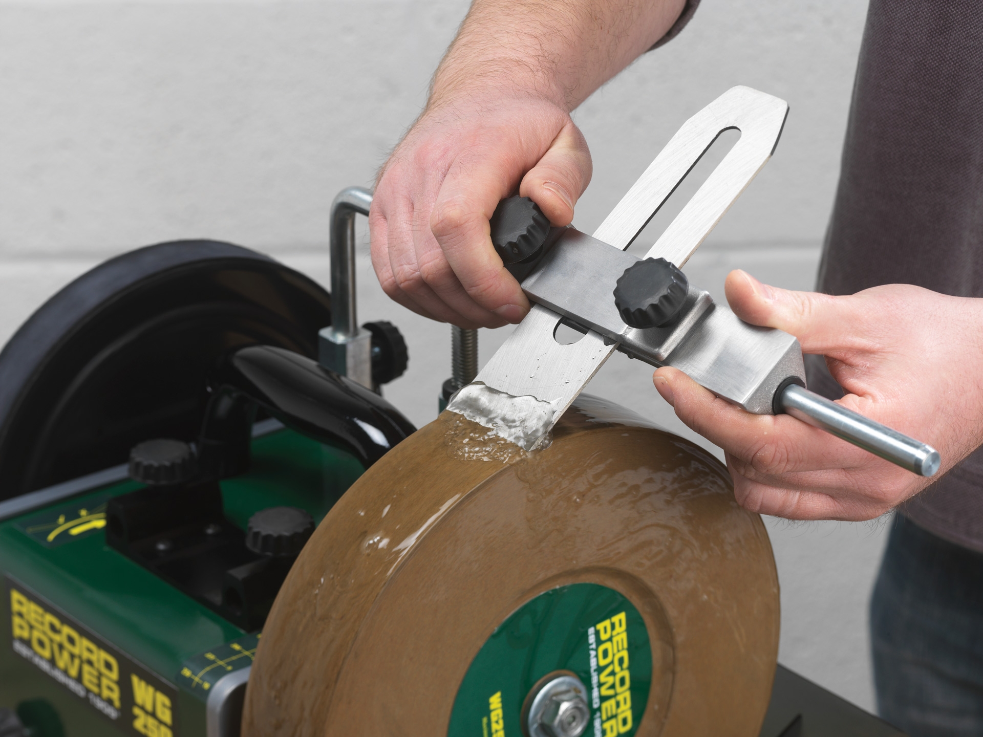 Zum Schärfen von Stechbeiteln, schrägen Flachmeißeln und Hobeleisen bis 75 mm Breite.