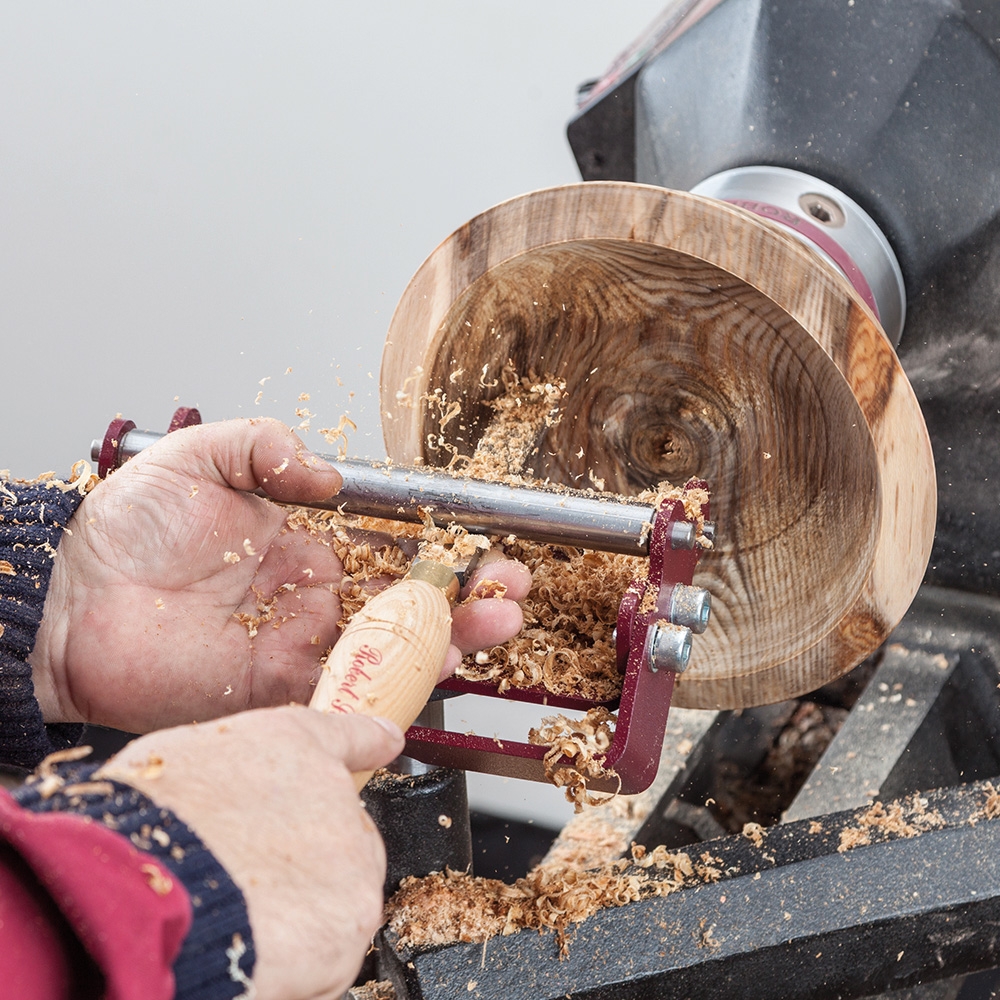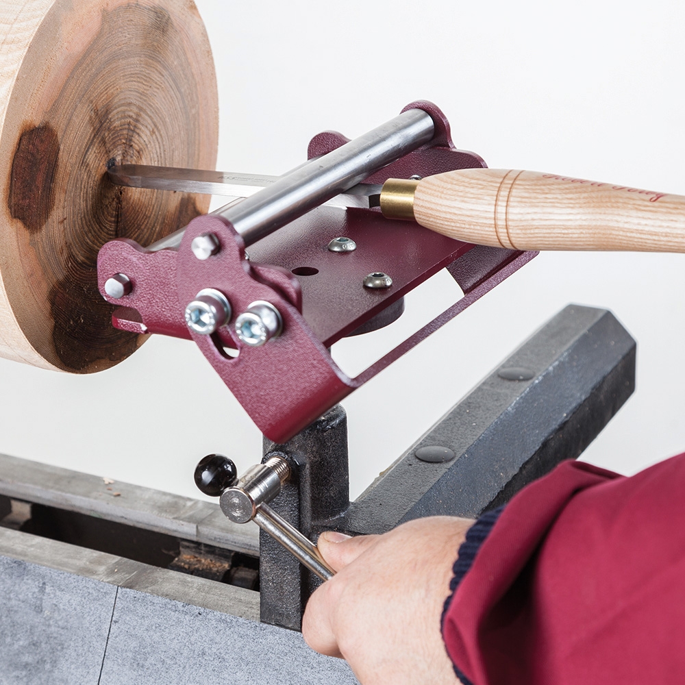 Die SteadyPro Ausdrehhilfe ist eine einfach zu bedienende Vorrichtung, die beim Aushöhlen und bei vielen anderen Drechselarbeiten eine zusätzliche Unterstützung für das Werkzeug bietet.