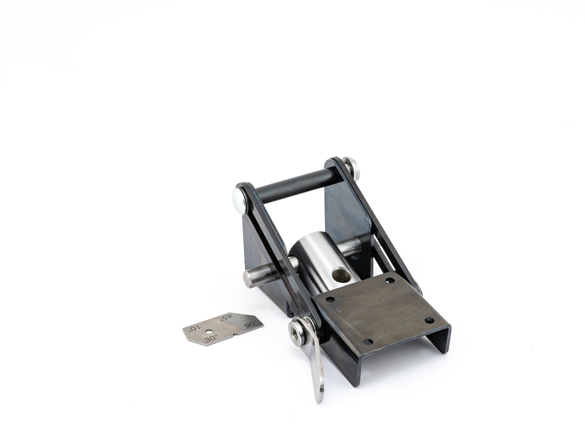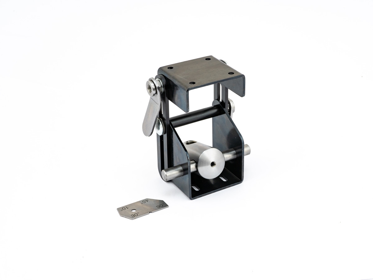 Dieses geniale Schärfsystem kann bei praktisch allen herkömmlichen Schleifmaschinen eingesetzt werden, denn es ist höhenverstellbar. Um unterschiedliche Fasenwinkel zu schärfen, stellen Sie den Winkel des Auflagetisches nach Bedarf ein.