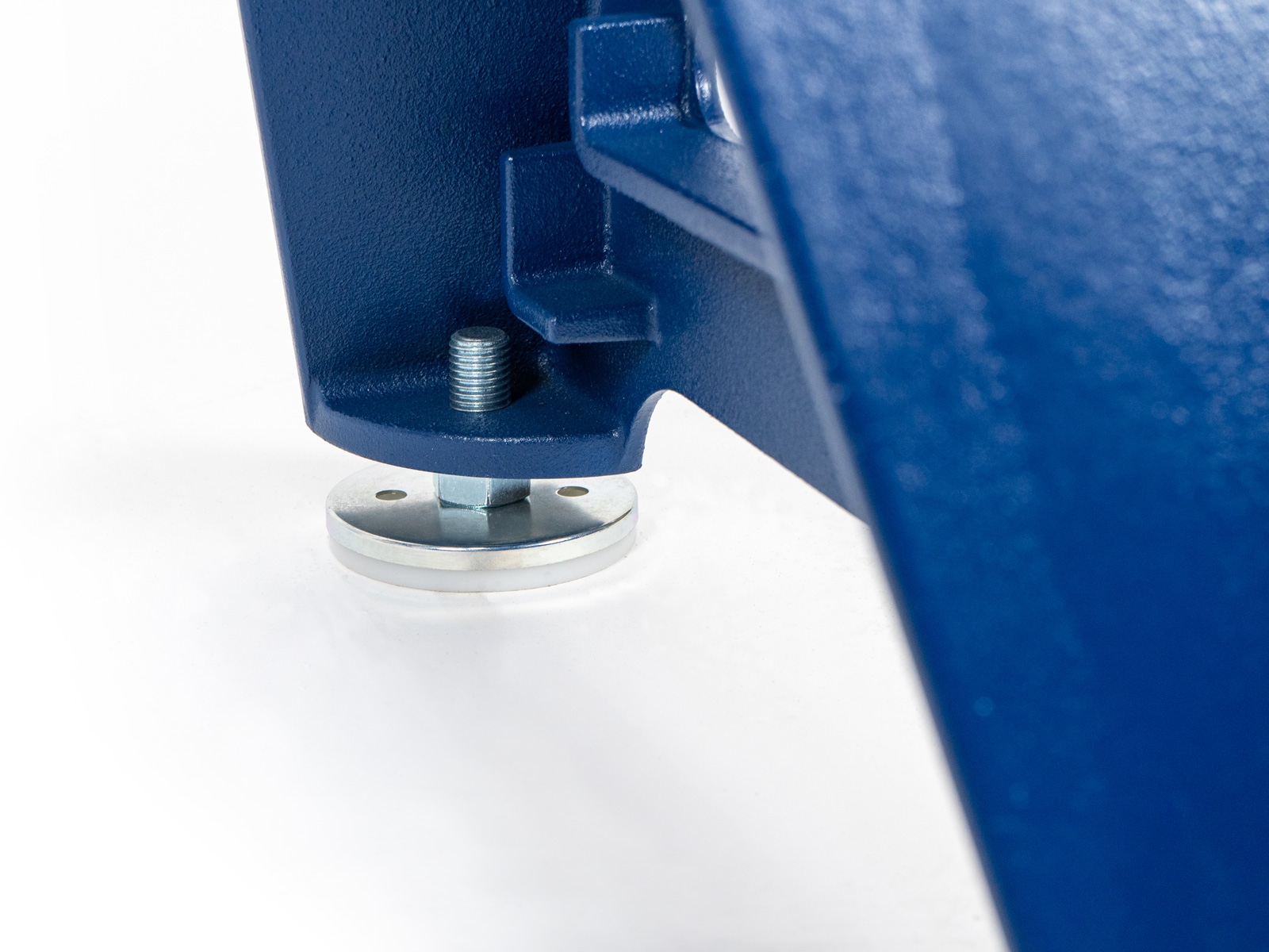 - Die Gussbeine sind besonders massiv ausgeführt, mit Stellfüßen mit extra starkem M20 Gewinde. Mehrere Aufnahmepunkte für das optional erhältliche Zusatzbett ergeben eine extreme Vielseitigkeit, auch bei beengten Platzverhältnissen in der Werkstatt.