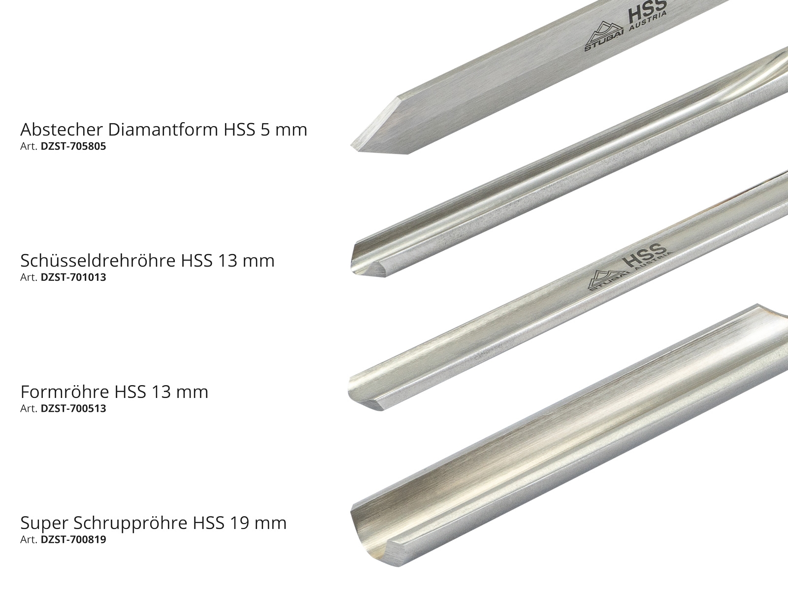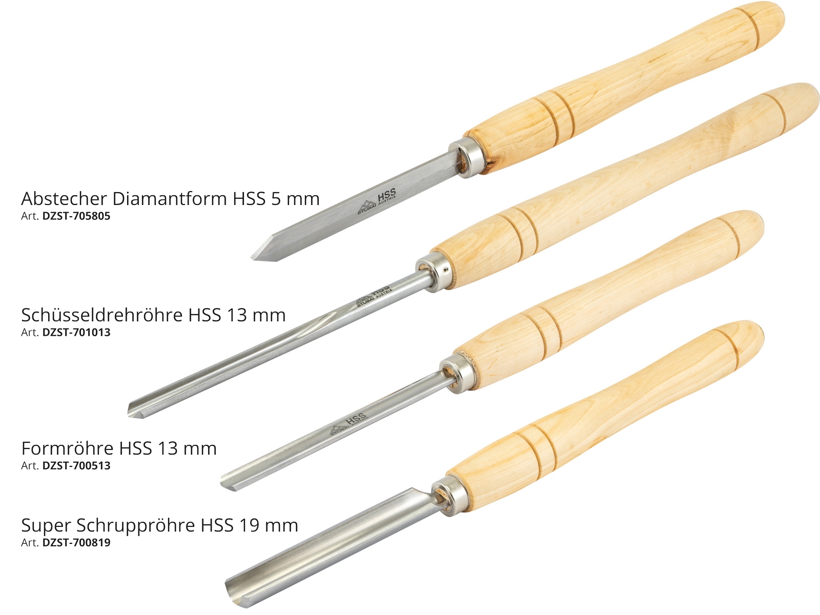 4-teiliges Set inkl. Rolltasche. Auswahl an STUBAI HSS Drechseleisen für einen erfolgreichen Start.