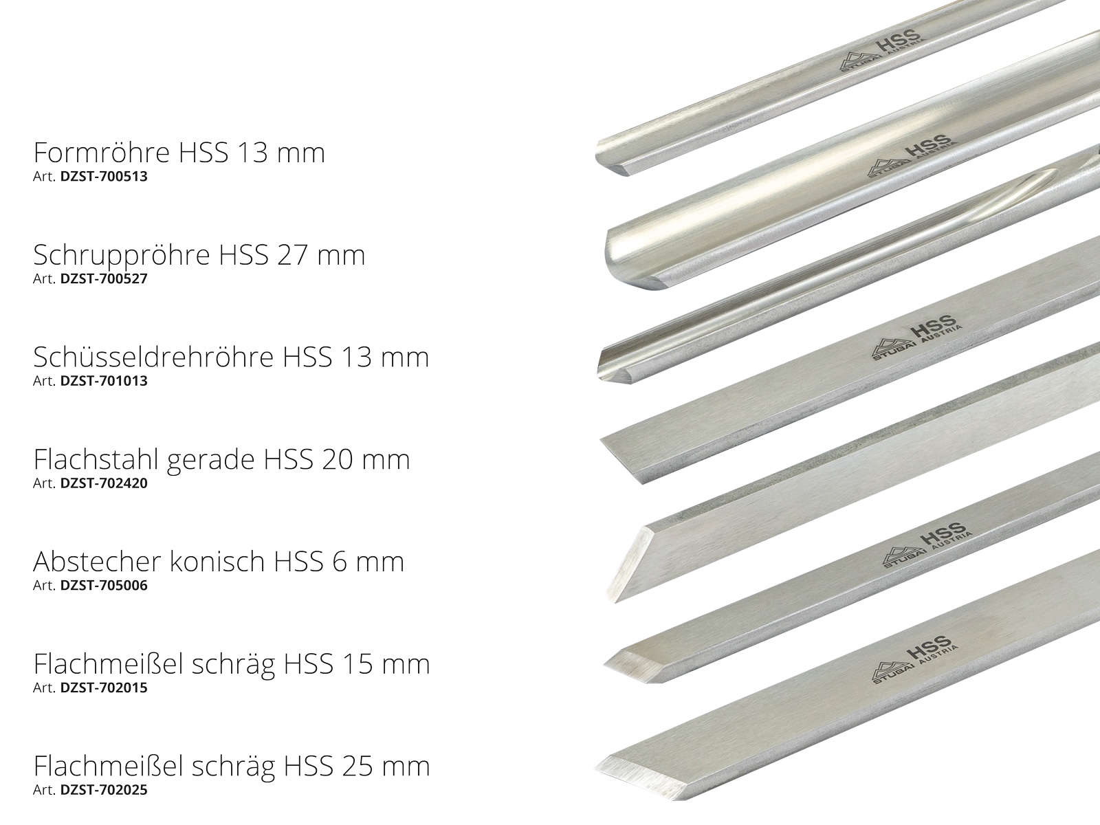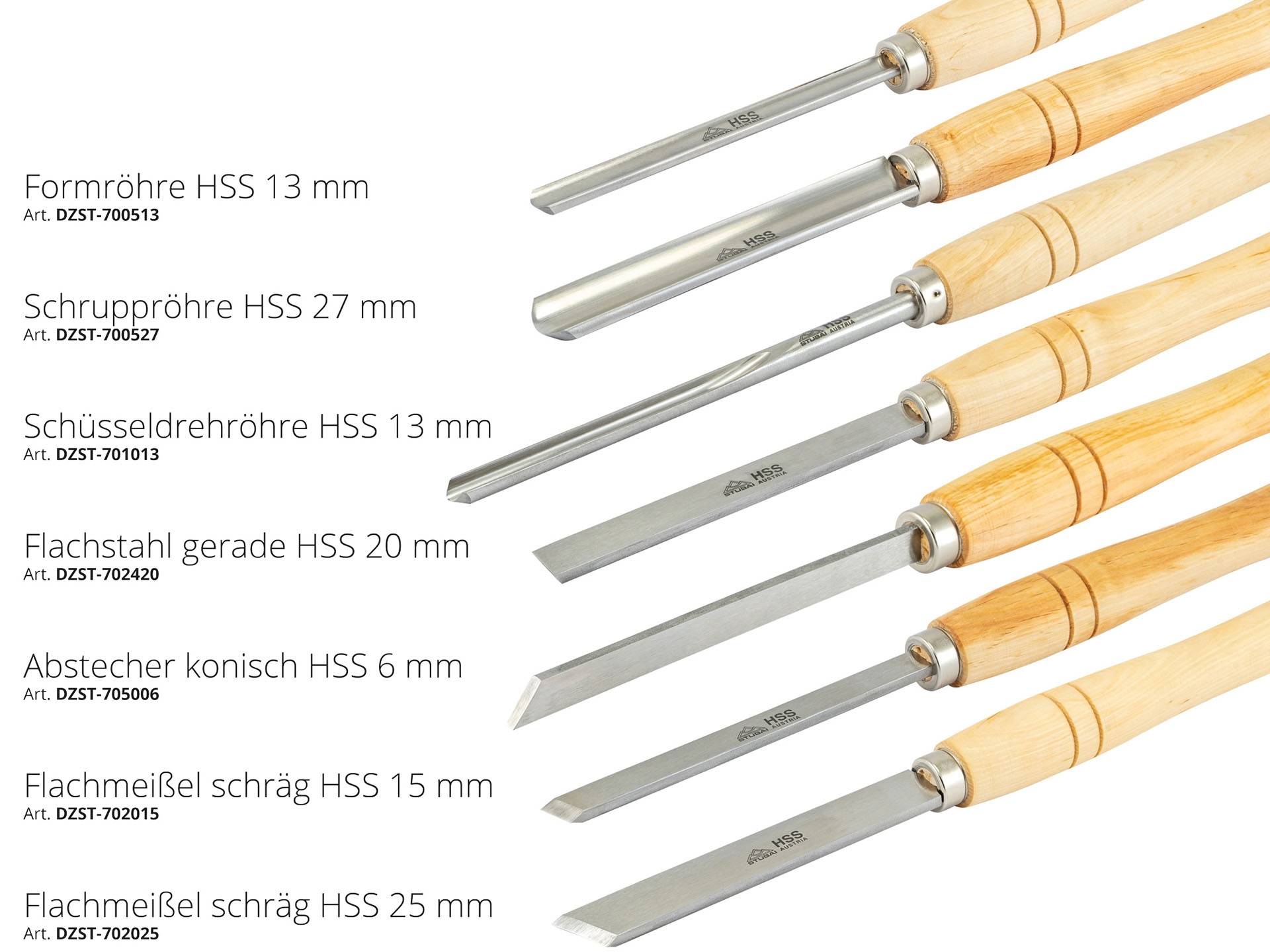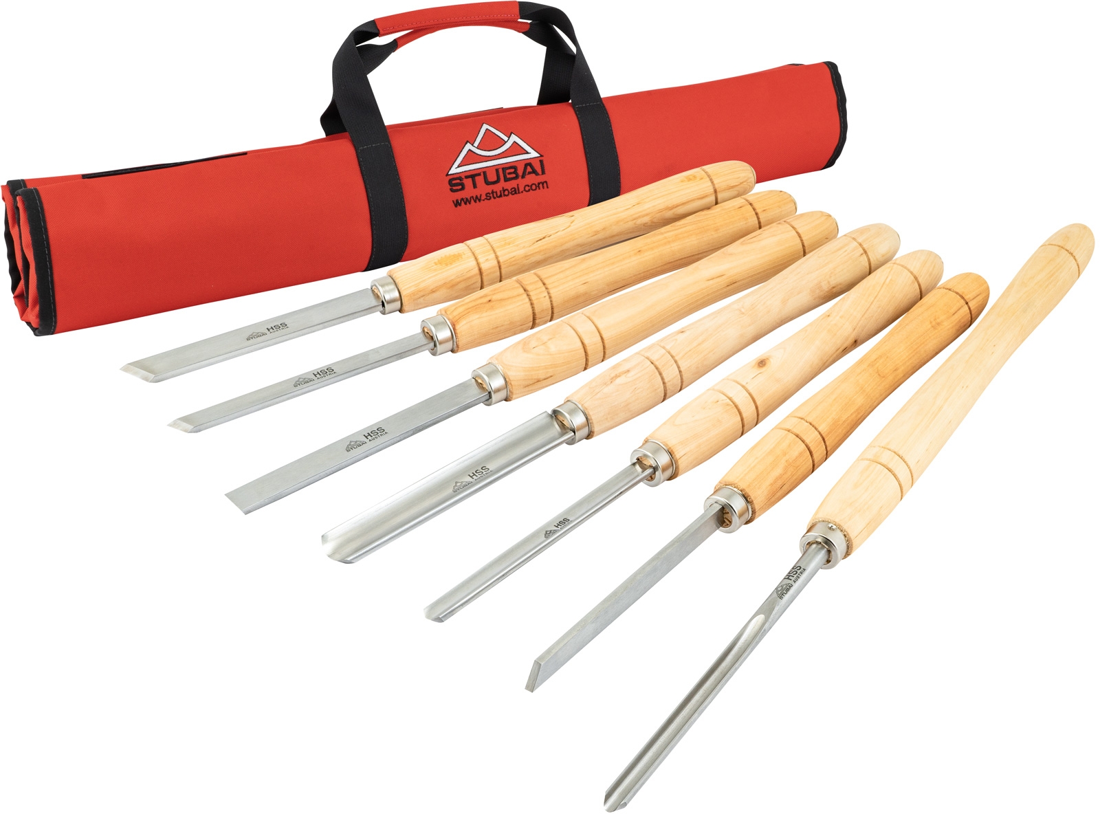 7-teiliges Drechselwerkzeug SET (Grundset) in Top-Bestückung. Spezielle Auswahl an STUBAI HSS Drechseleisen für den optimalen Start.