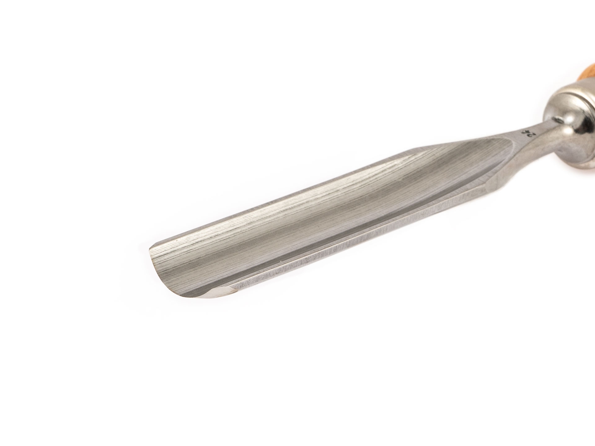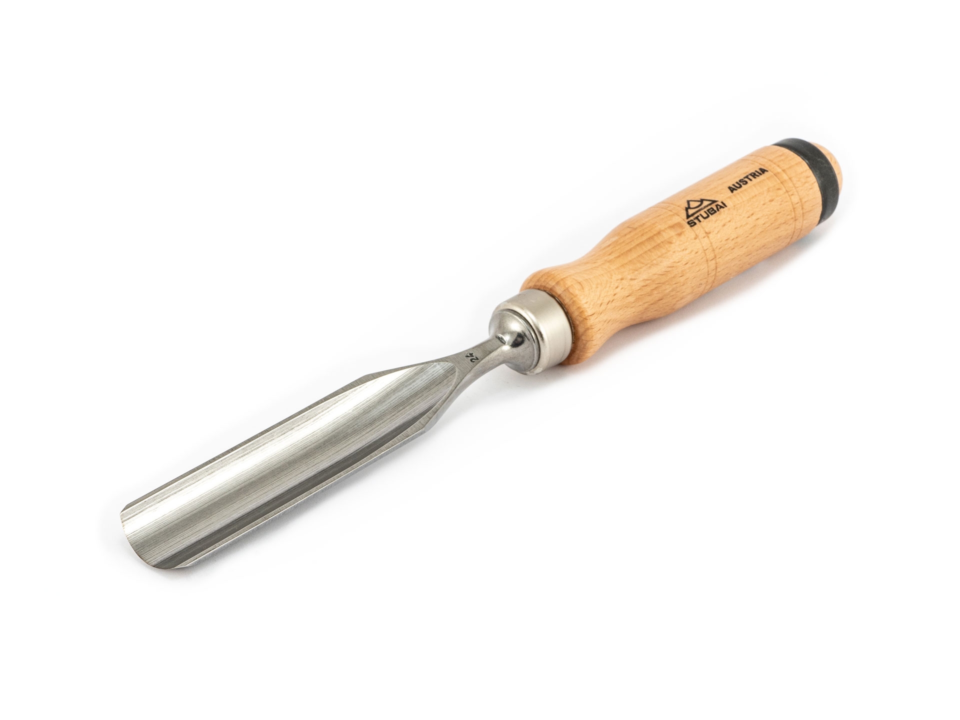 Handgeschmiedetes Hohleisen mit Heft aus ausgesuchter, astfreier Rotbuche.