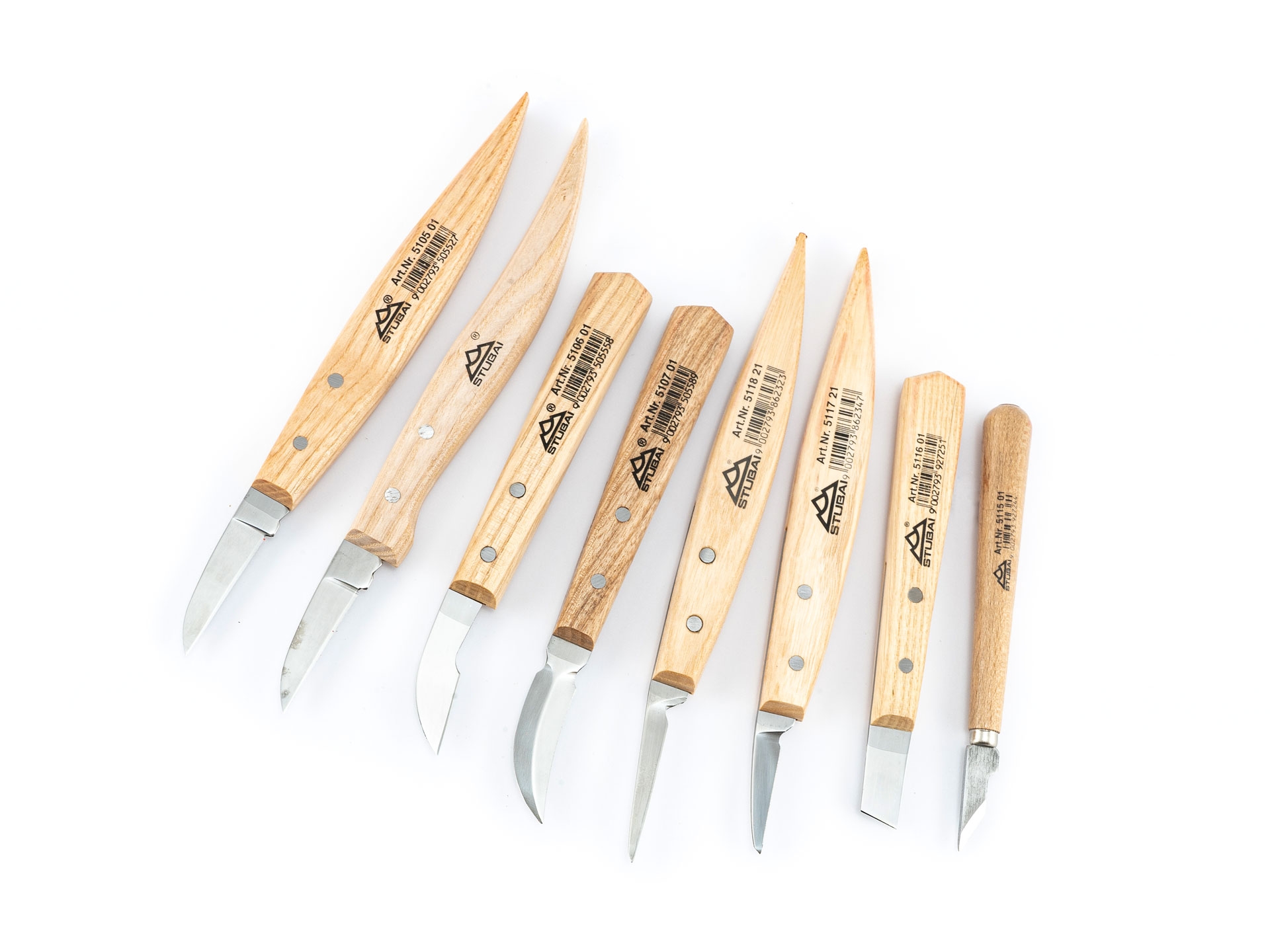 Das komplette STUBAI Kerbschnitzmesser Sortiment in einem Satz.