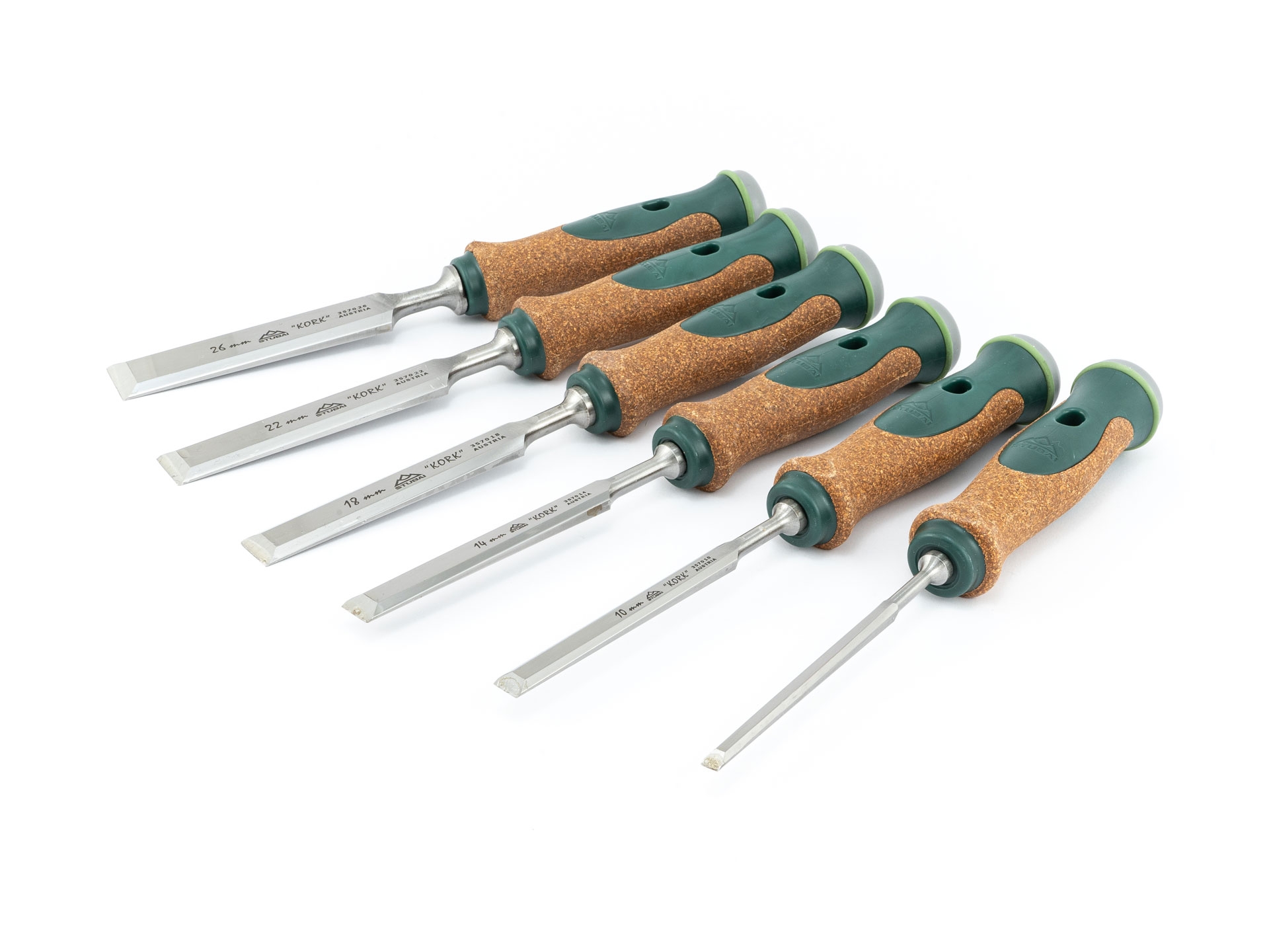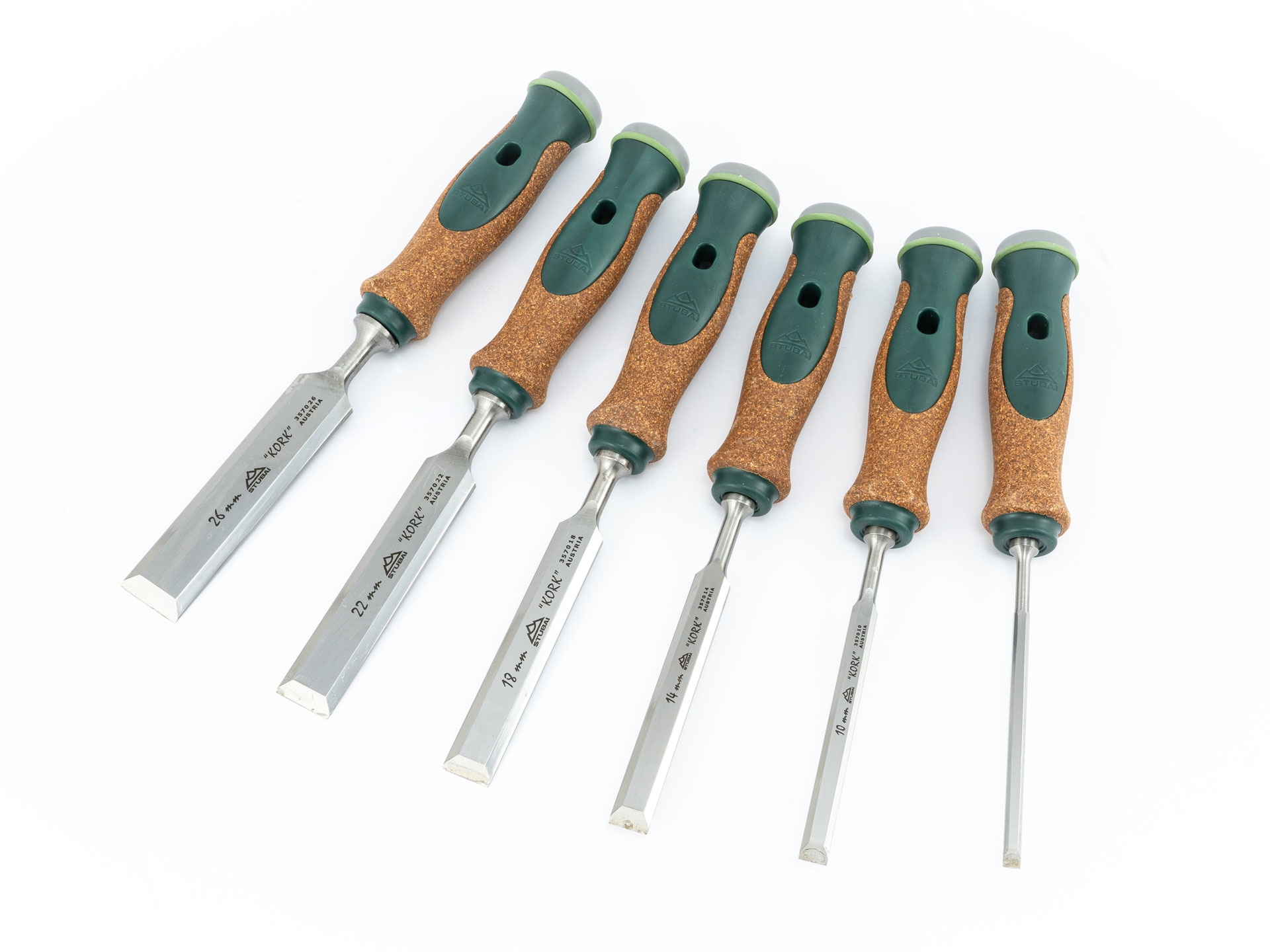 6-teiliges Spezial Stemmeisen SET schwedischer Form mit Korkheft.