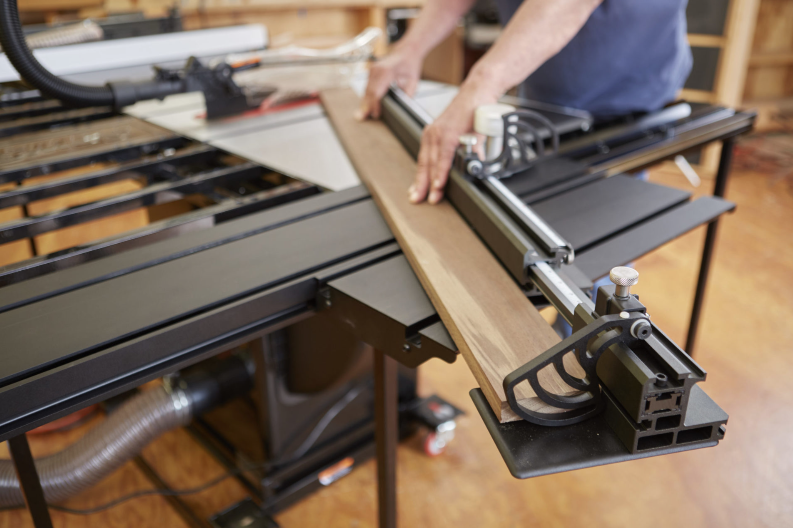 Erleben Sie höchste Präzision beim Kappen mit dem SawStop Schiebeschlitten. Der aufwendig konstruierte Tisch ist mit mehreren groß dimensionierten Lagern ausgestattet, die auch unter Last einen gleichmäßigen und leichtgängigen Lauf gewährleisten. Der Schiebeschlitten verfügt über einen vom Anwender einstellbaren Anschlag, der sich bis ±60° schwenken lässt und rastende Festpositionen in 15-Grad-Schritten bietet. Der Abstand des Anschlags zum Sägeblatt kann einfach angepasst werden, um eine zuverlässige Werkstückauflage sicherzustellen. Zusätzlich lässt sich problemlos ein Opferanschlag für Nullspalt-Schnitte montieren. Der Schiebeschlitten kann in zwei Montagepositionen installiert werden und bietet eine Kappkapazität von wahlweise 91,4 cm oder 125 cm.
